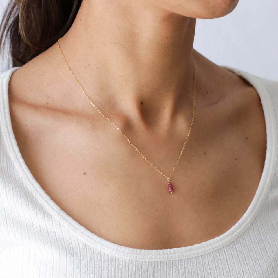 สร้อยคอพลอยทับทิมสีแดงประดับทอง 18K ดีไซน์หรูหรา พร้อมจี้แบบฝังขอบเพชร สร้อยคอพลอยประจำเดือนเกิดสำหรับผู้หญิง ของขวัญ