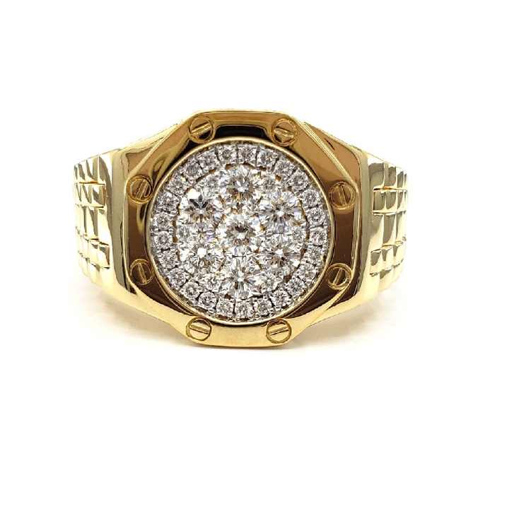 เครื่องประดับที่ดีและมีทักษะที่ดีที่สุดขายส่ง18K แข็งสีเหลืองทองเพชรธรรมชาติแหวนหมั้นสำหรับผู้ชายขนาดใหญ่