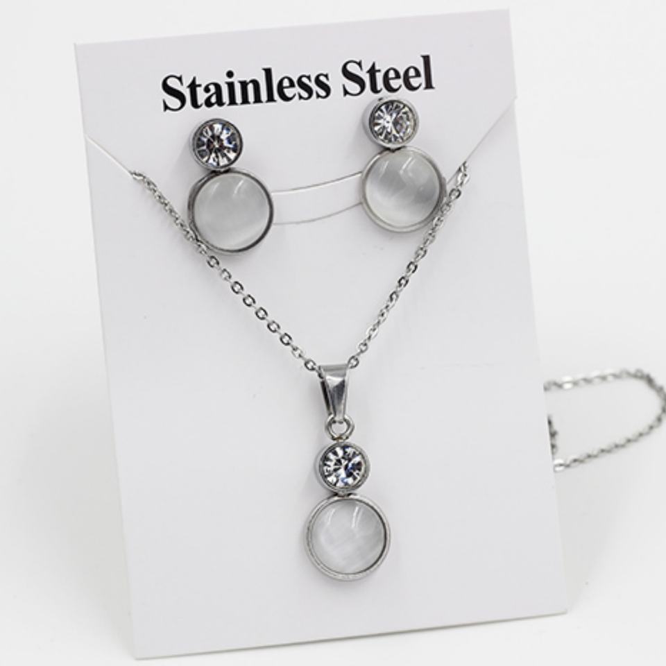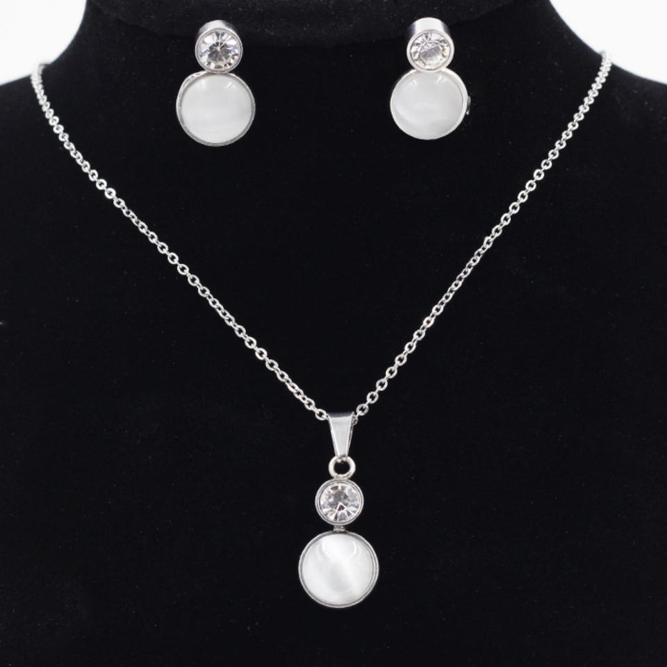 ชุดเครื่องประดับโอปอลสำหรับผู้หญิง ต่างหูและสร้อยคอ ชุบทอง ประดับด้วยหินตาแมวธรรมชาติอย่างดี บนตัวเรือนสแตนเลส