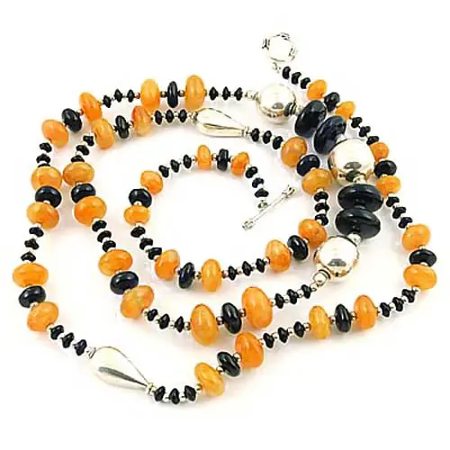สร้อยคอจี้สวยงาม ประดับพลอยสีส้มและสีดำ เงินแท้ เครื่องประดับสำหรับผู้หญิง