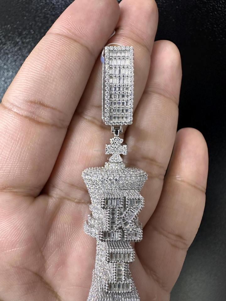 จี้และเครื่องรางดีไซน์3D แฟนซีตัดบาแกตต์ตัดการตั้งค่า VVS1เพชรที่กำหนดชื่อจี้ของผู้ชายเครื่องประดับที่ดี