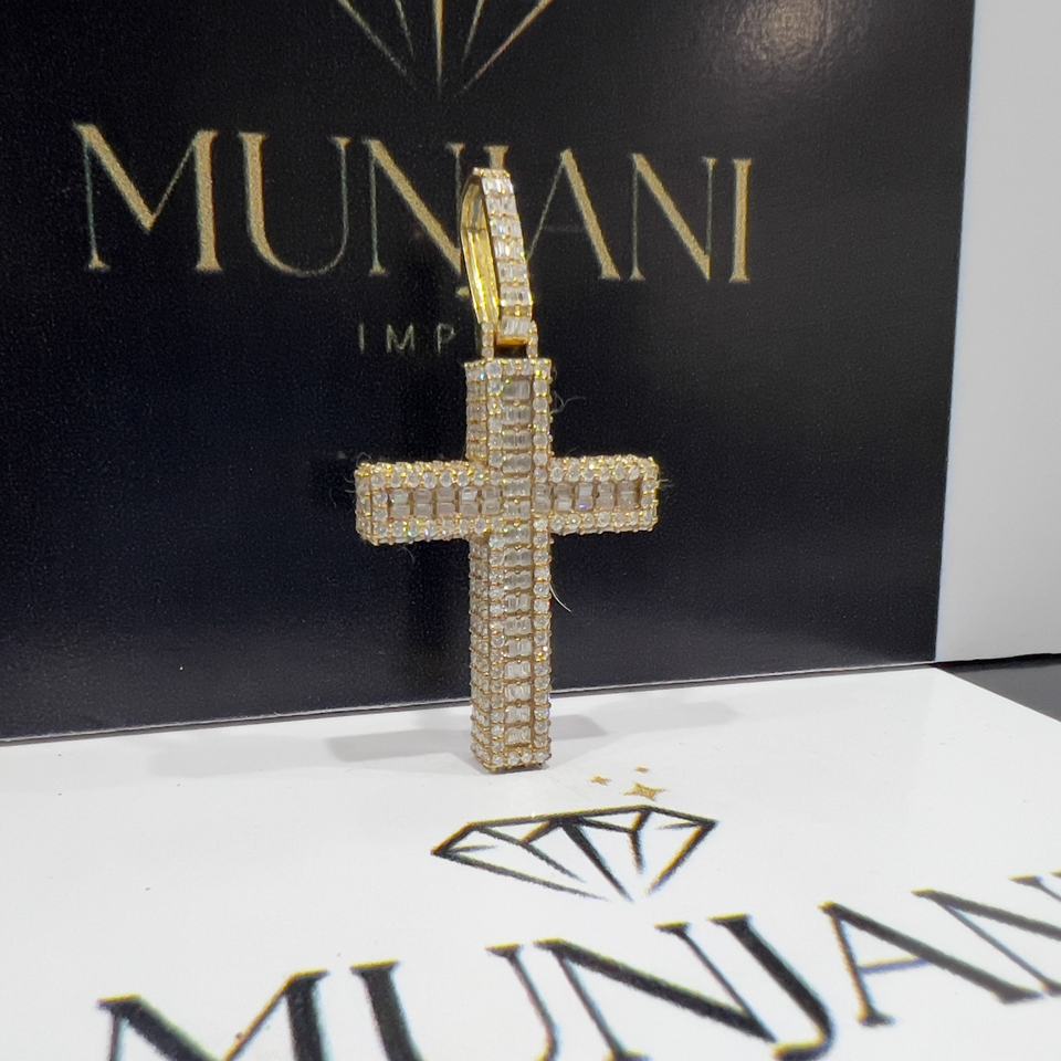 จี้เพชร VVS รูปกางเขน ชุบทองสำหรับผู้ชาย สไตล์ฮิปฮอป คริสเตียน ทรงบาแกตต์ เหมาะสำหรับงานปาร์ตี้