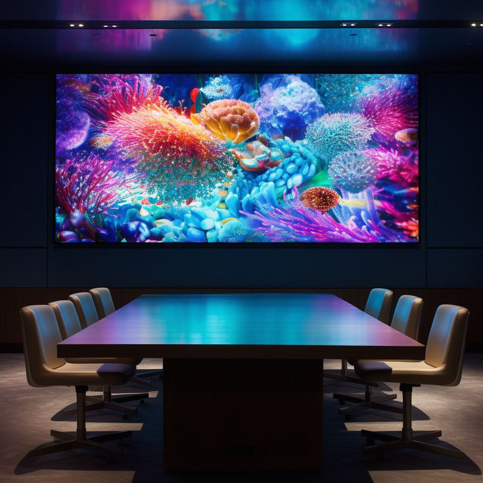 จอวิดีโอวอลล์ Fine Pixel P0.9 มม. มินิ LED สีเต็มรูปแบบ ความละเอียดสูงพิเศษ แสดงผลไร้รอยต่อ สำหรับห้องออกอากาศและห้องควบคุม