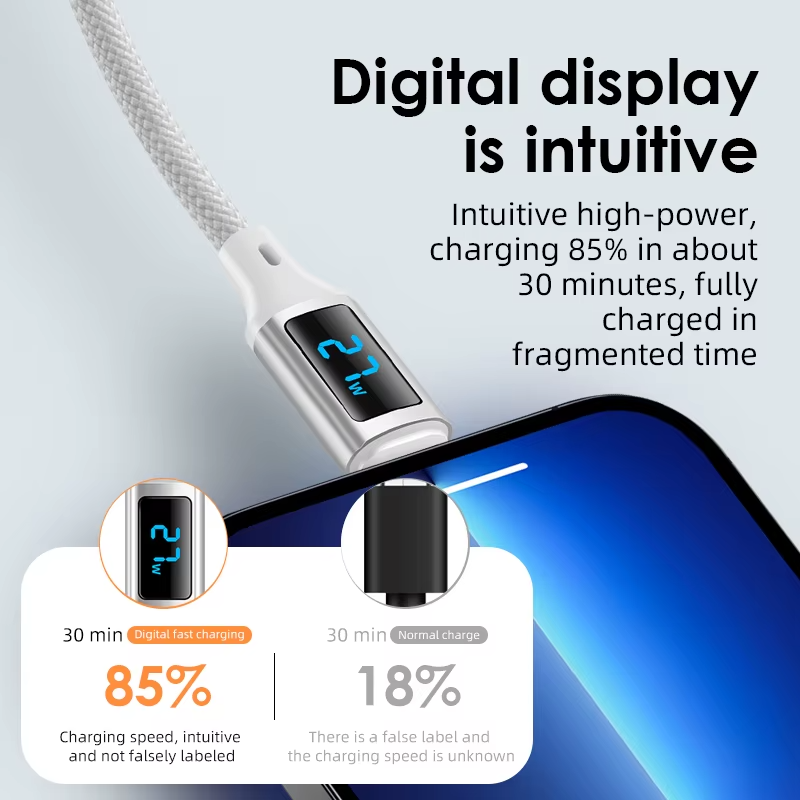 ราคาดี คุณภาพเยี่ยม สายชาร์จโทรศัพท์เร็ว 6A แกนทองแดงแท้ จอแสดงผลดิจิตอล สายดาต้าอเนกประสงค์ LeEco's C2C