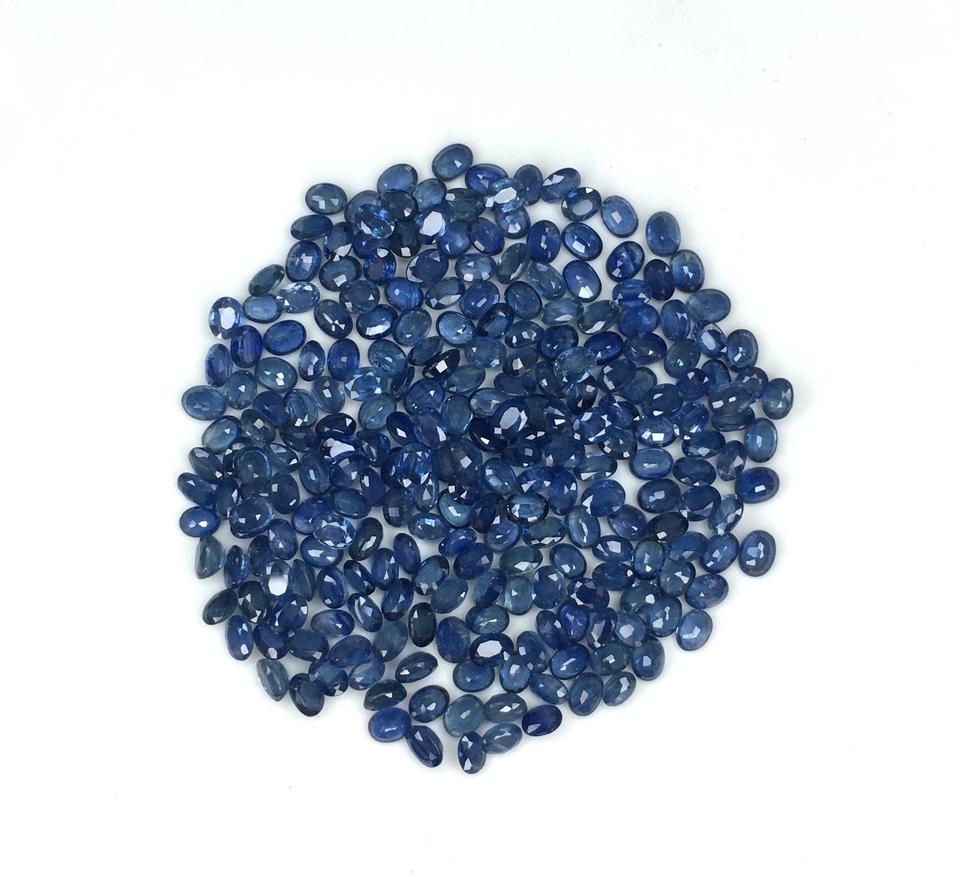 พลอยทรงหลวมสีฟ้ารูปวงรีตัดด้วยพลอยสีฟ้าขนาด4x3มม. สำหรับทำสร้อยข้อมือและต่างหู