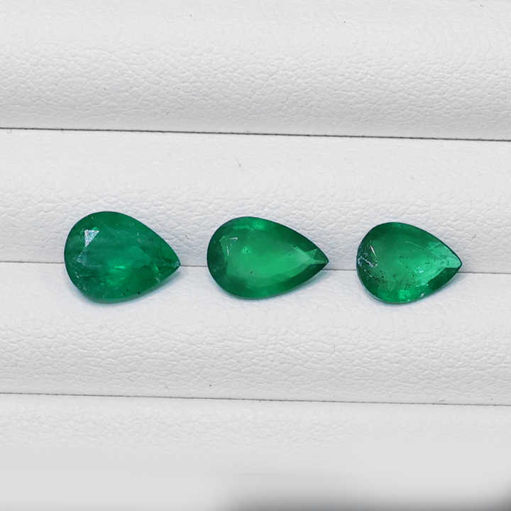 พลอยมรกตแซมเบียแท้คุณภาพดี น้ำหนัก 3.30 กะรัต หินประจำเดือนพฤษภาคม ทรงลูกแพร์ขนาด 6x8-6x9 มม. สีเขียวกลาง เหมาะสำหรับทำแหวน