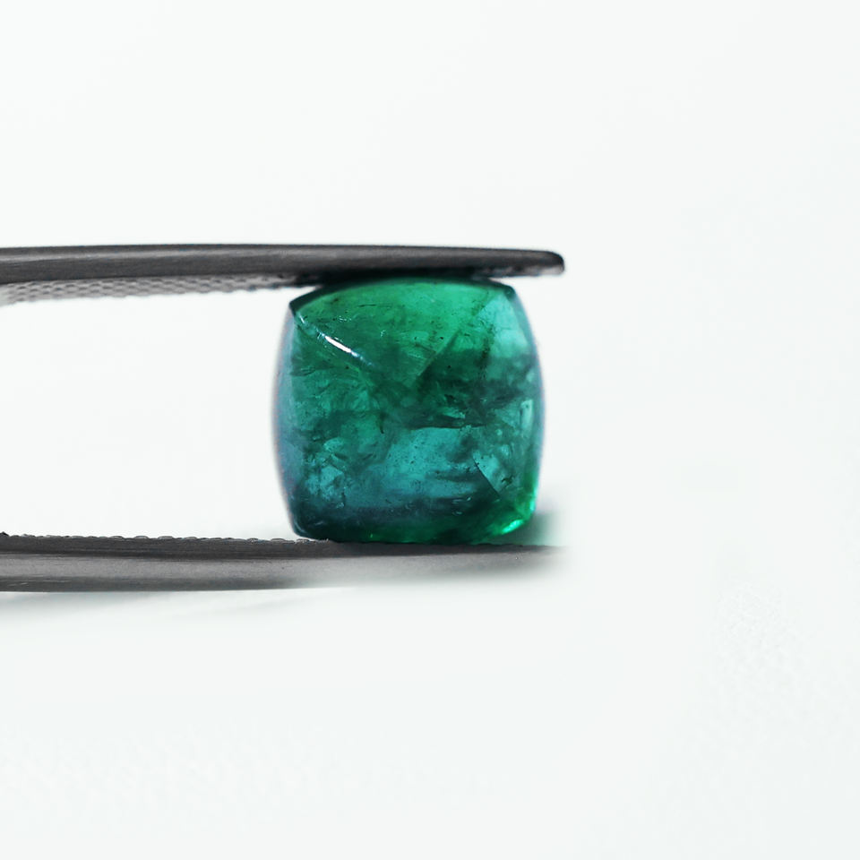 พลอยมรกตแซมเบียแท้ คุณภาพดี 5.82 กะรัต ทรงคุชชั่น สีเขียวอมฟ้า สำหรับทำแหวนและจี้