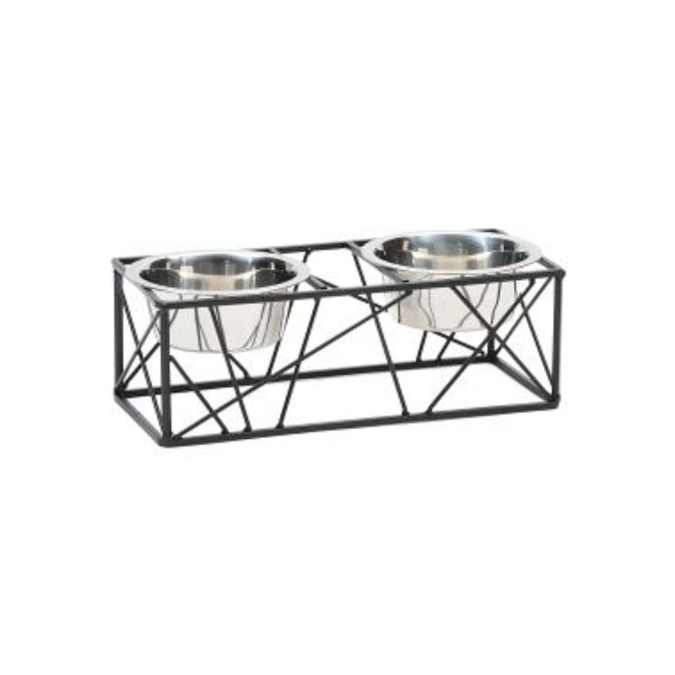 ชุดชามอาหารและน้ำทำจากโลหะสำหรับสุนัขและแมวพร้อมขาตั้งเหล็ก