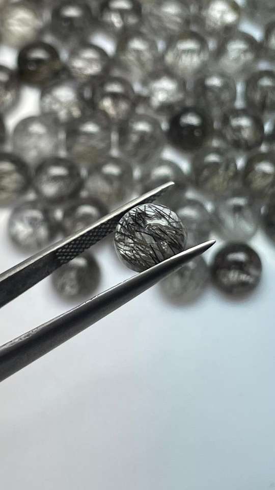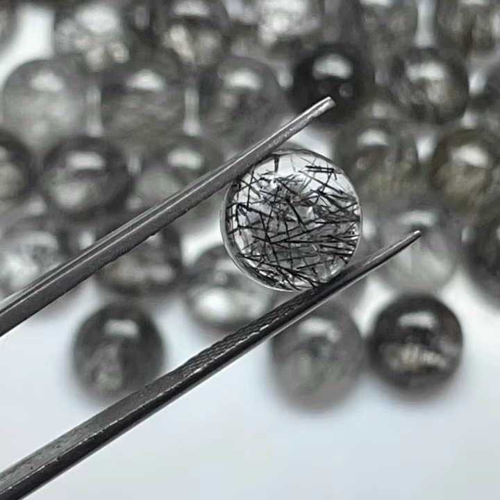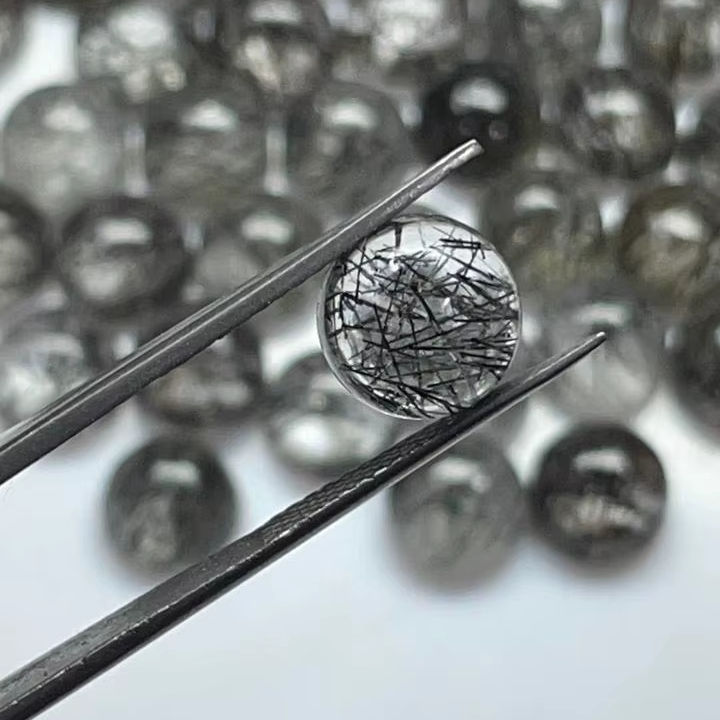 พลอยคุณภาพดีขายส่ง ควอตซ์รูไทล์สีดำธรรมชาติ ขนาด 9 มม. ทรงกลมแบบคาโบชอง ผิวเรียบ สำหรับแหวน จี้ เครื่องประดับ จัดแสดงในสหรัฐอเมริกา