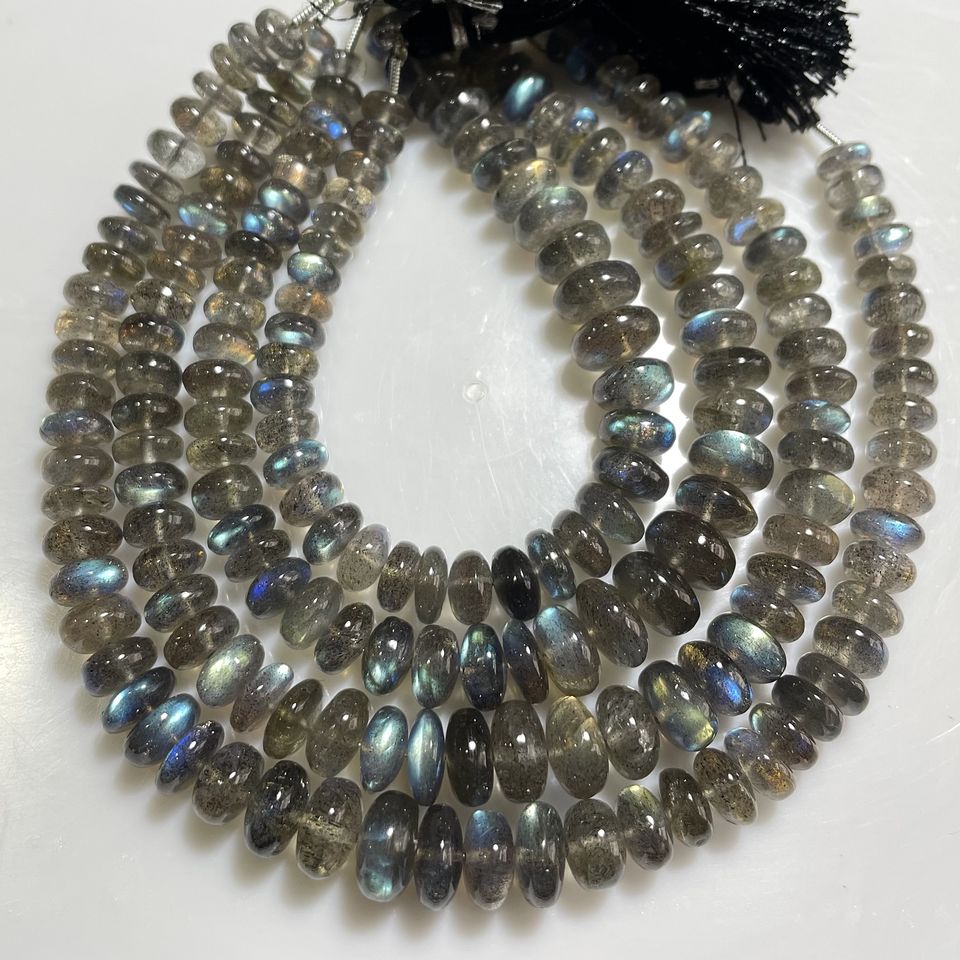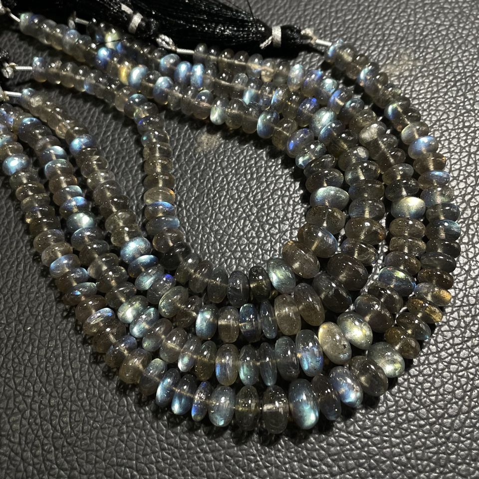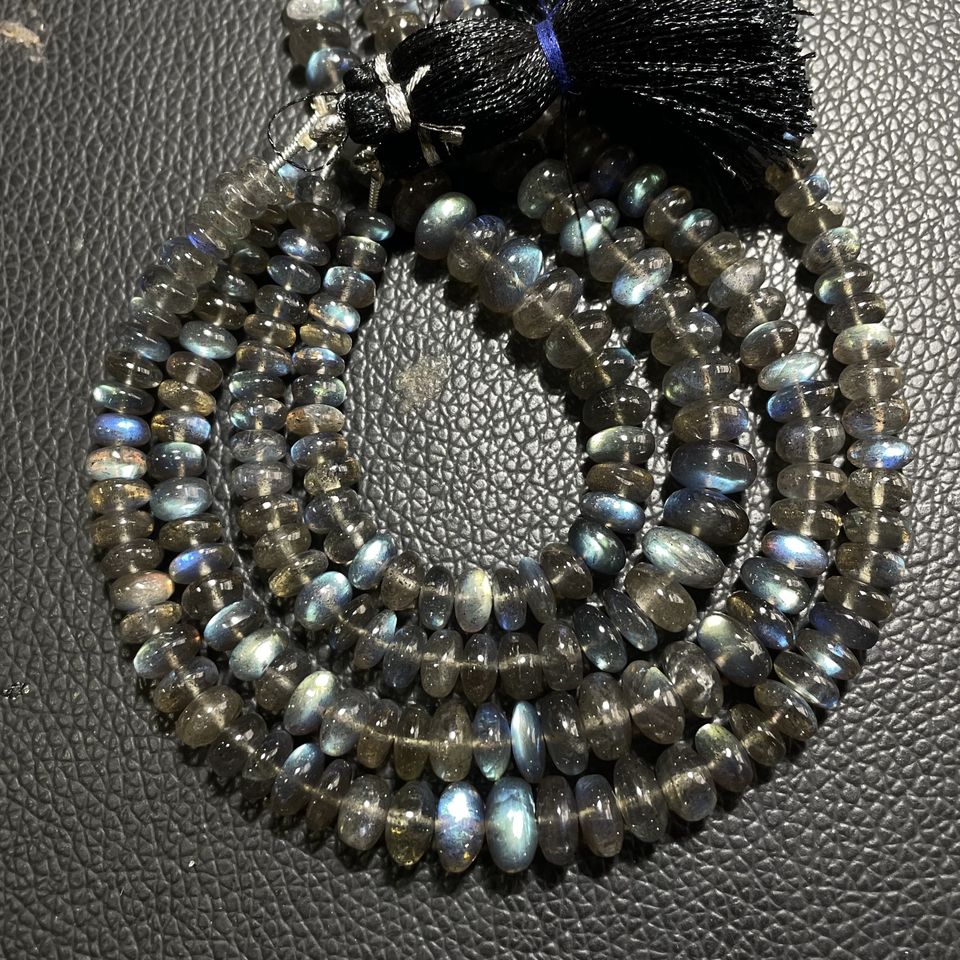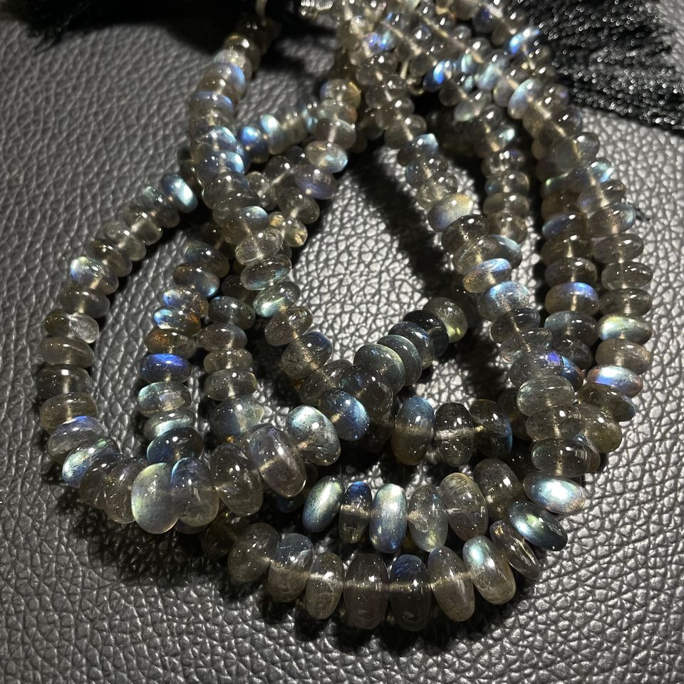 ลูกปัดรูปเม็ดกลมลาบราดอไรต์สีดำสีรุ้งหลากสี