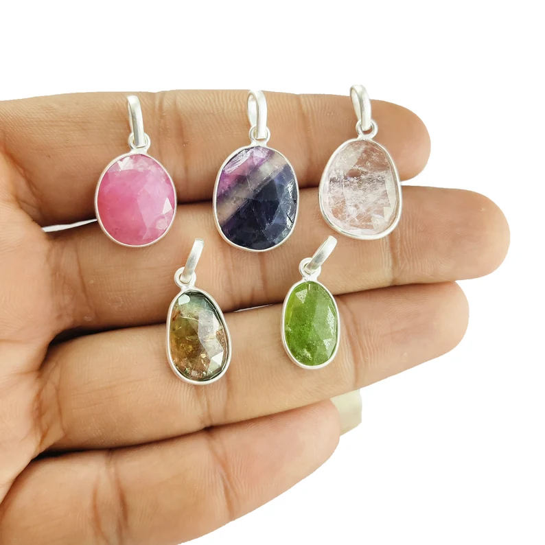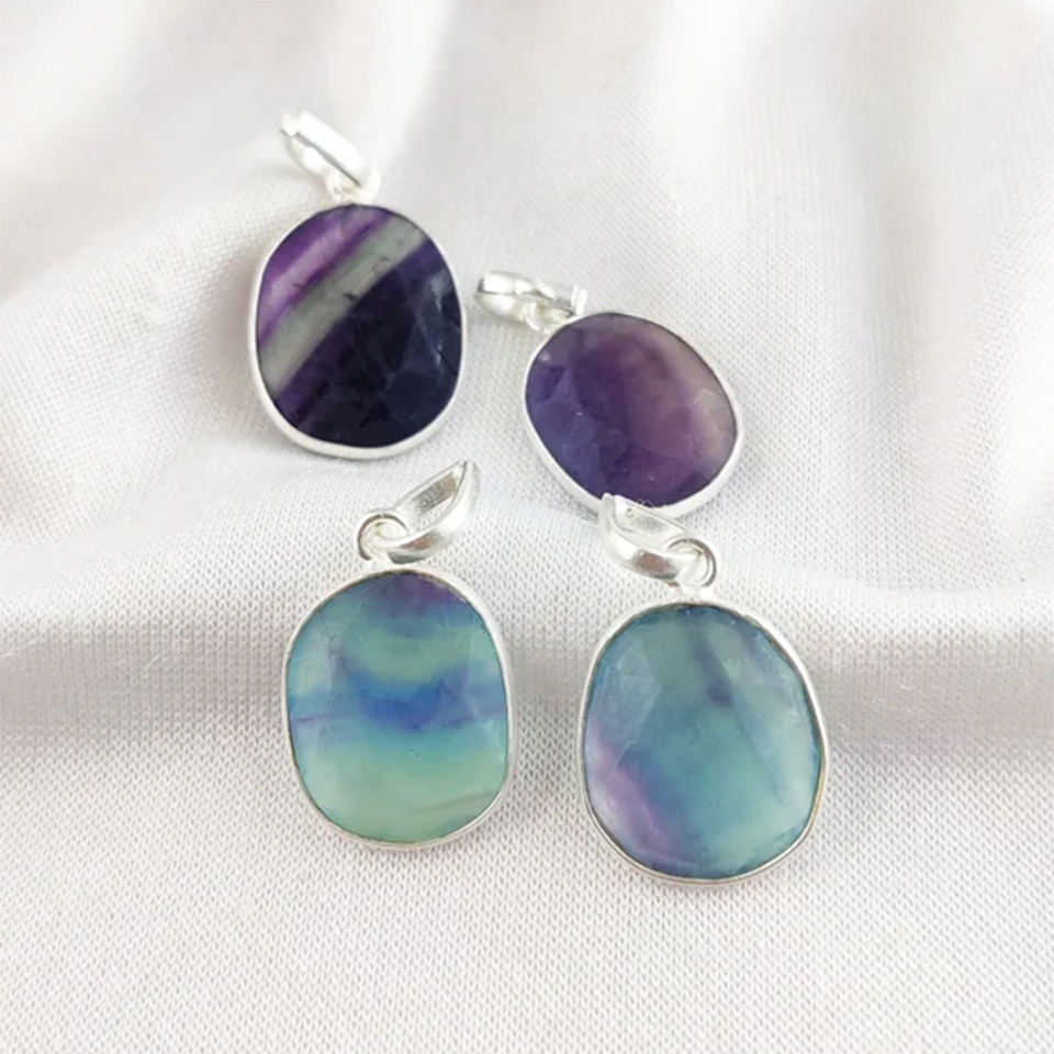 สร้อยคอประดับ925เงินสเตอร์ลิงประดับโต๊ะชุบทองฟลูออไรต์ธรรมชาติจี้อัญมณีรูปกรอบแฟนซีจี้ประกันตัว