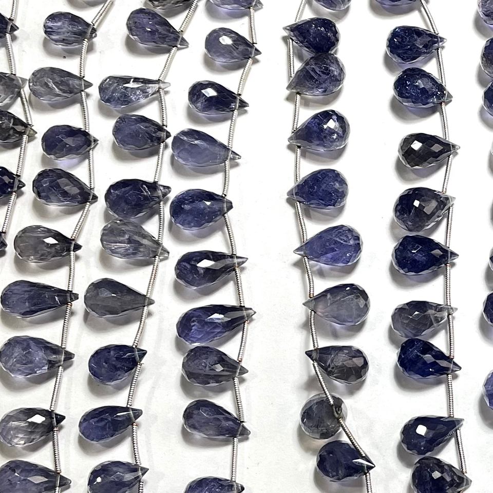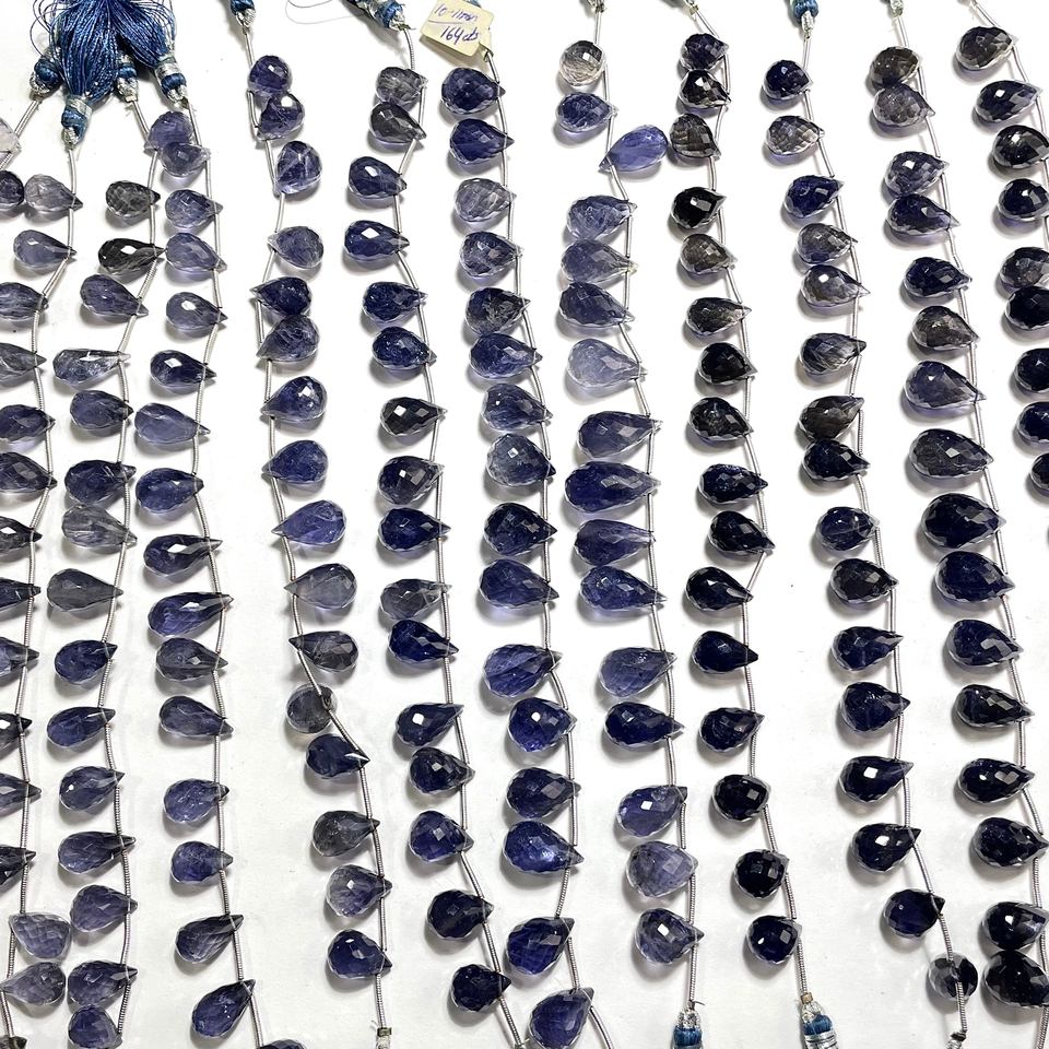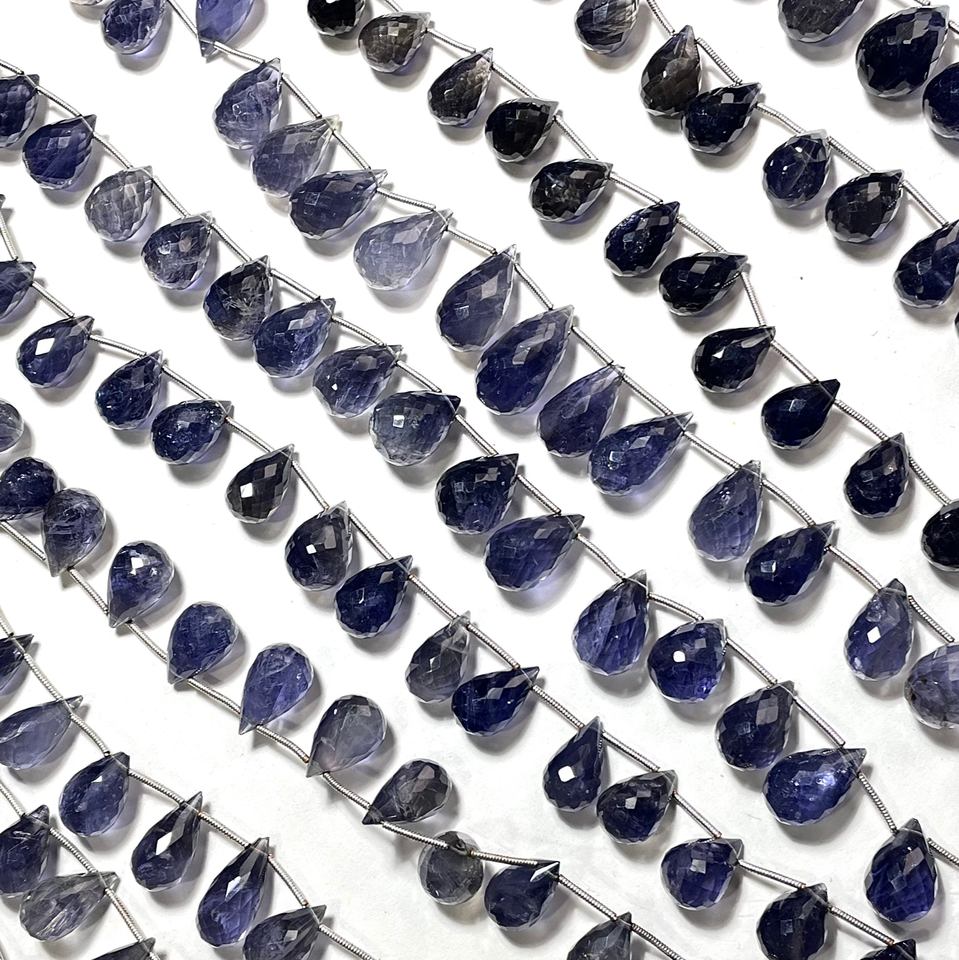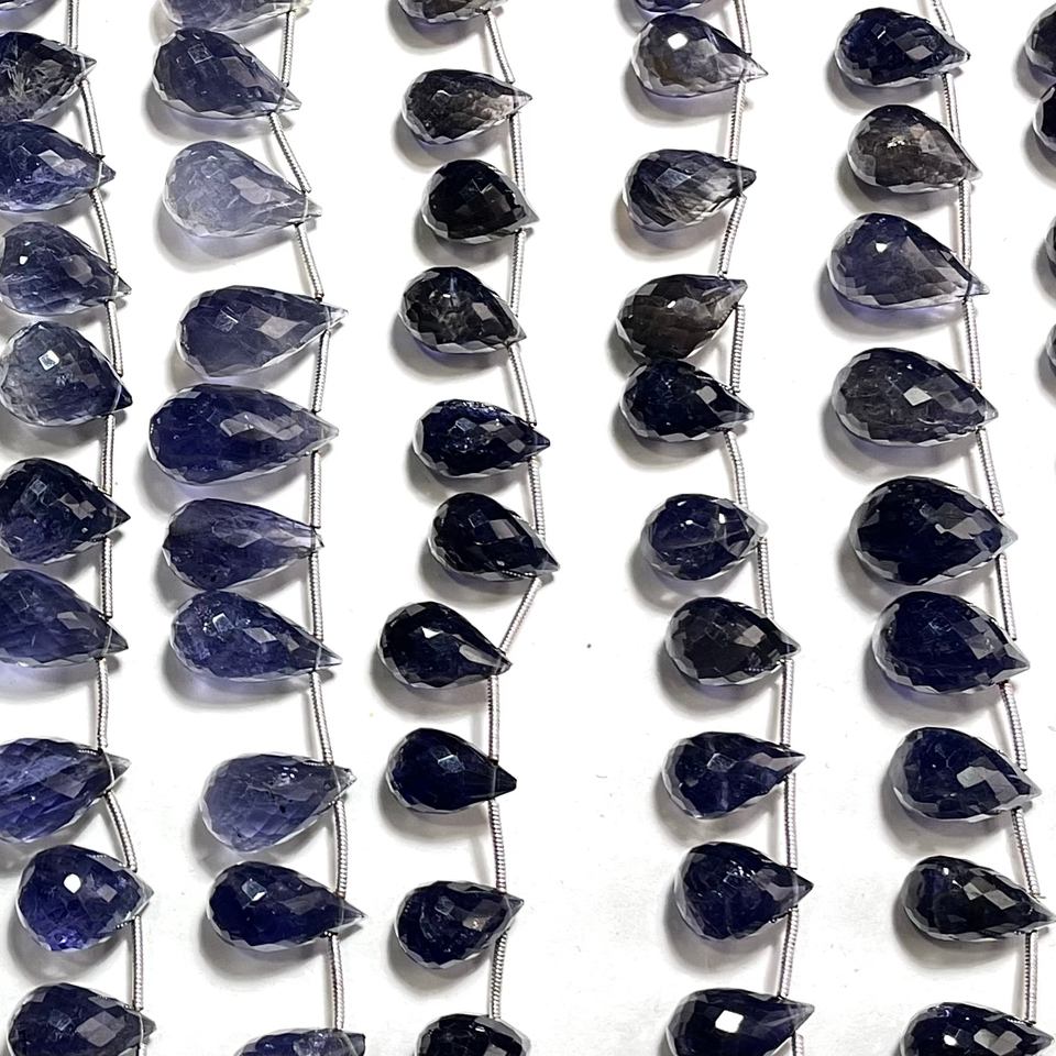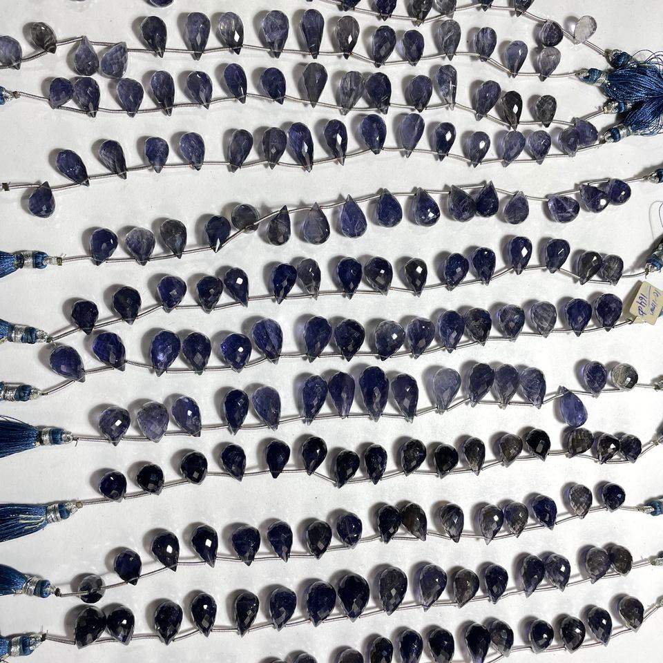 เม็ดบริโอไลต์เหลี่ยมเพชรพลอยจากธรรมชาติลูกปัด Briolette รูปทรงหยดน้ำตาขนาดใหญ่สีน้ำเงิน