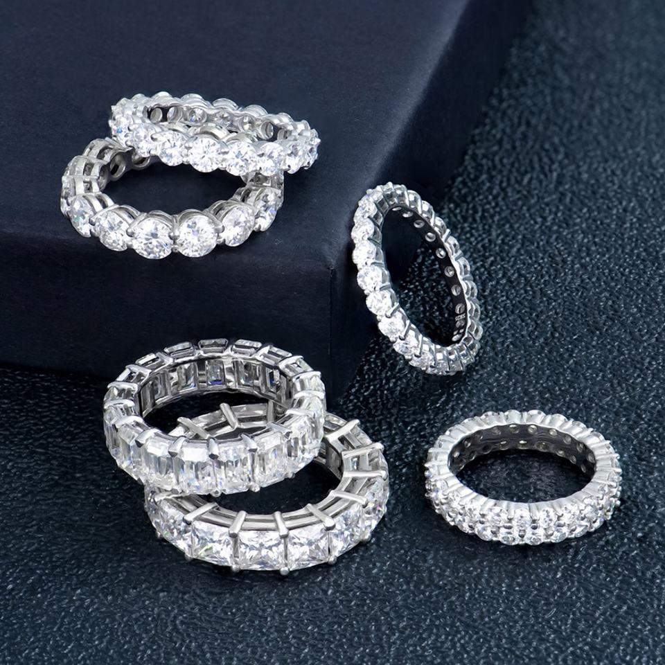 แหวนมอสซาไนต์ทรงเทนนิสแบบ Eternity คุณภาพดี เกรด D/VVS สีมรกต ทำจากเงินแท้ 925 สไตล์ฮิปฮอป