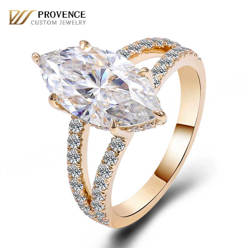 แหวนทองคำแท้คุณภาพสูง 14K 18K ประดับเพชรโมอิสซาไนต์ทรงรัศมี น้ำหนัก 1-10 กะรัต แหวนหมั้น แหวนเรียบหรูสำหรับผู้หญิง