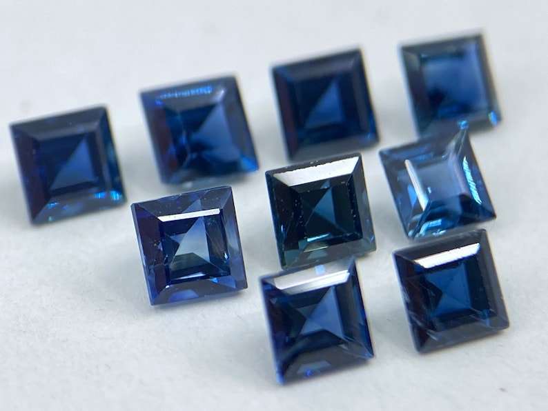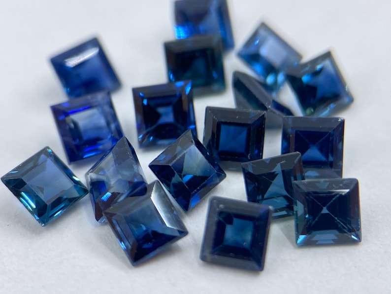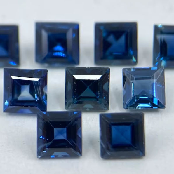 พลอยแซฟไฟร์ทรงเหลี่ยมเจียระไน ขนาดต่างๆ 1.5 มม. ถึง 3 มม. สำหรับทำเครื่องประดับ