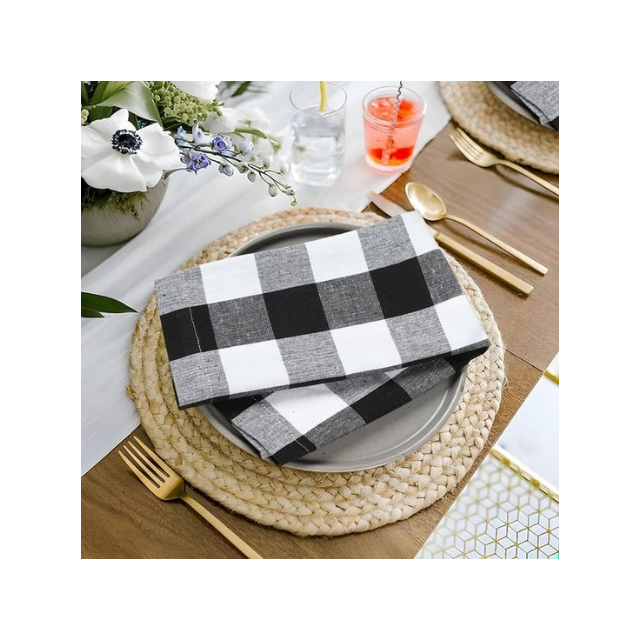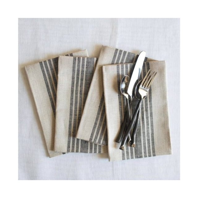 ผ้าเช็ดปากคอตตอน280TC 18x18in เส้นขอบสีฟ้ารูปแบบเส้นโค้งที่กำหนดเองเหมาะสำหรับการรับประทานอาหารระดับพรีเมียมในตลาดส่งออก