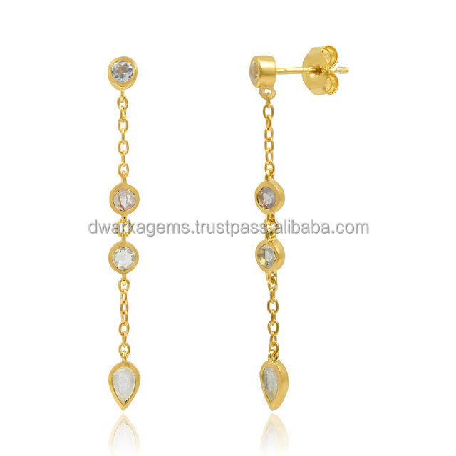 เครื่องประดับที่ดีหรูหรา925ชุบทองเงินสเตอร์ลิงสีขาวบุษราคัมต่างหูแบบห้อยสำหรับผู้หญิงและเด็กผู้หญิง