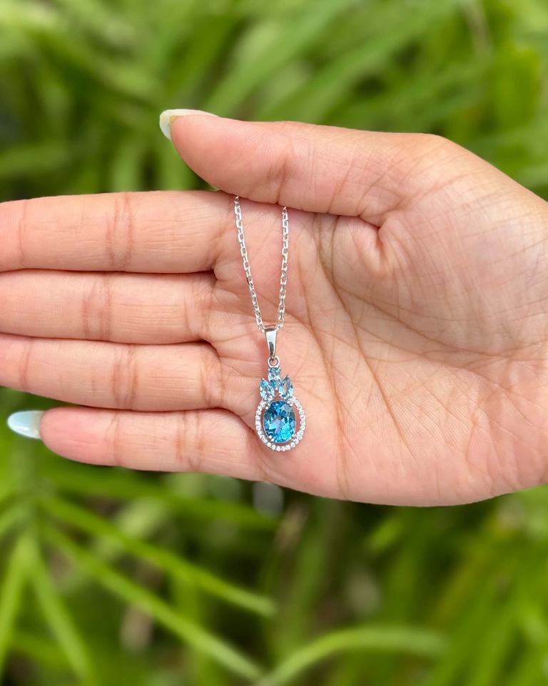 Finearth Ventures Blue Topaz Marquise-ตัดจี้เงินสเตอร์ลิงคลาสสิกออกแบบเสน่ห์รัศมี-ผู้หญิง unisex เครื่องประดับสำหรับ