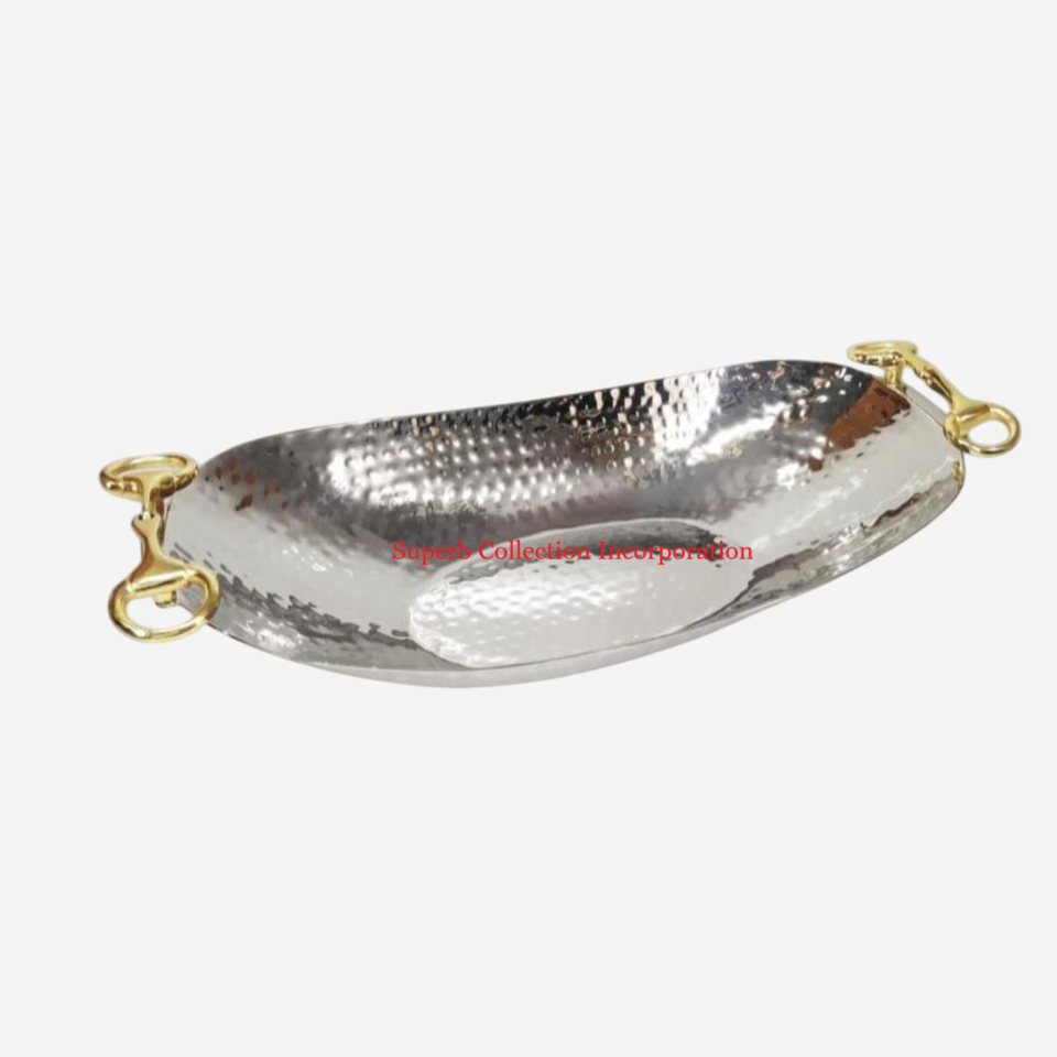 Fineast ถาดโลหะรูปนกสำหรับเสิร์ฟอาหารขนมในราคาสมเหตุสมผลสำหรับงานแต่งงานพร้อมจานและจานหูจับทอง