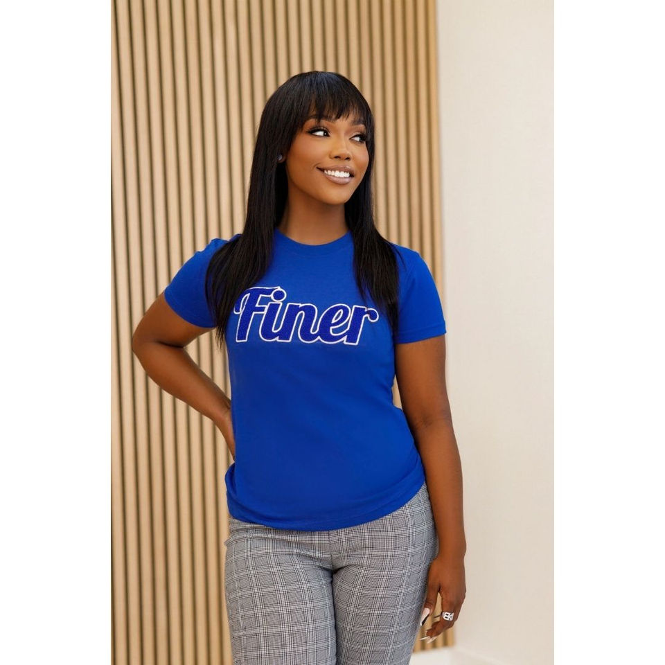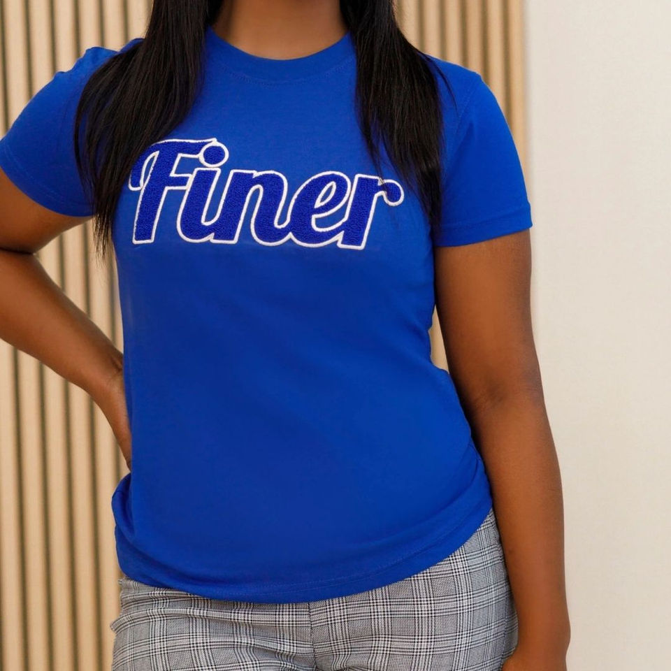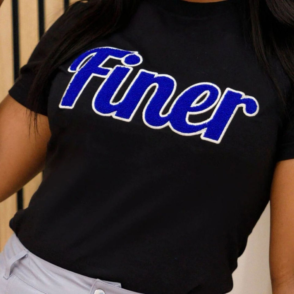 เสื้อยืดเชนิลล์เนื้อละเอียดสีดำ ปักตัวอักษรสีน้ำเงิน เสื้อผ้าสำหรับชมรมนักศึกษา ผ้าฝ้าย ลายกรีก สำหรับผู้หญิง