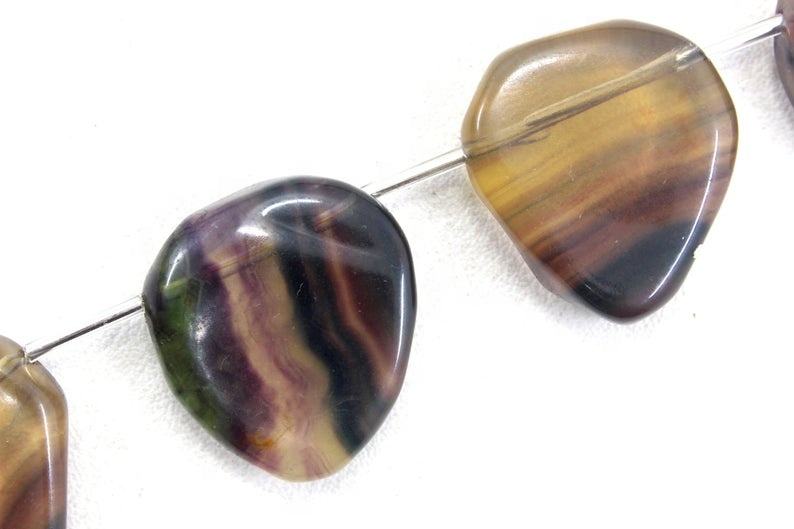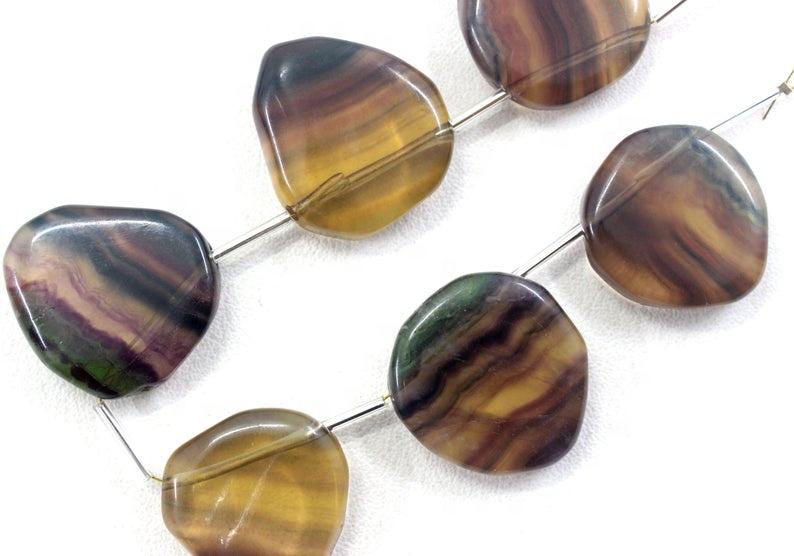 ลูกปัดฟลูออไรต์ธรรมชาติคุณภาพเยี่ยม 6 เม็ด รูปทรงแฟนซีเรียบเนียน สำหรับทำเครื่องประดับแฮนด์เมด DIY