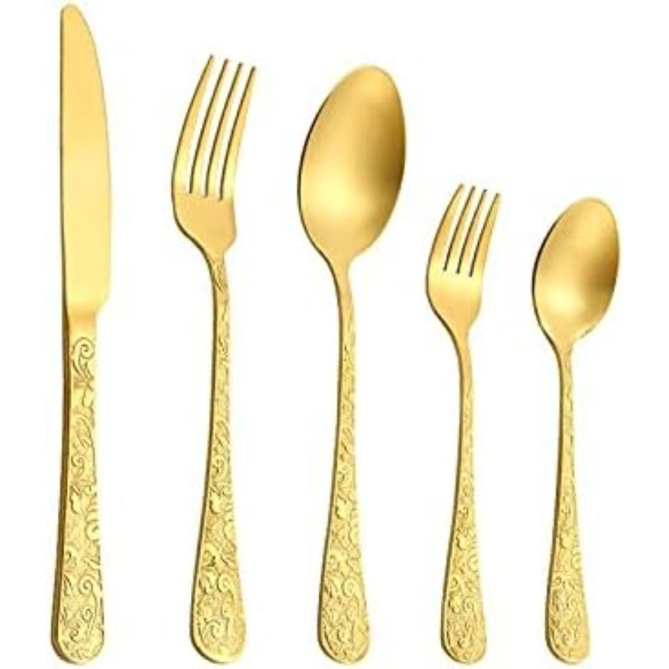คุณภาพดีที่สุดจํานวนมากสไตล์อินเดียอุปกรณ์ Flatware ชุดช้อนส้อมสแตนเลสในราคาสมเหตุสมผลสําหรับงานแต่งงานอาหารค่ํา
