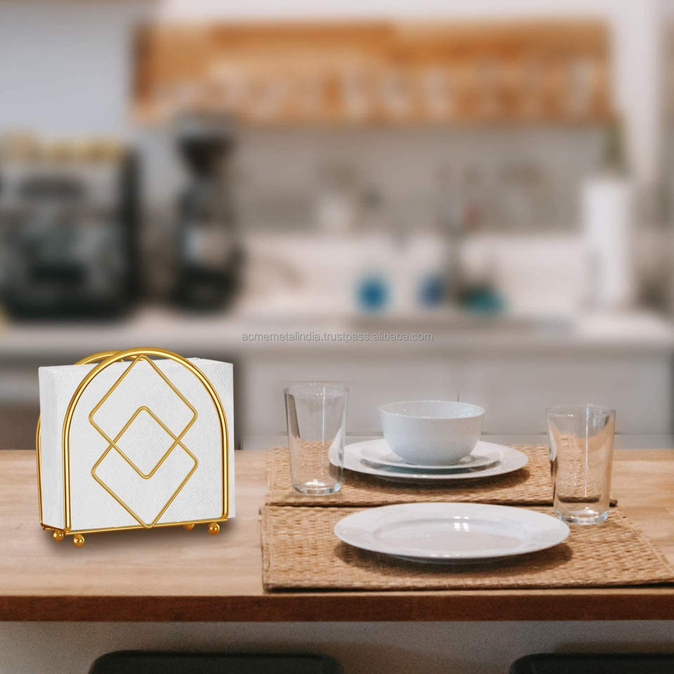 ที่ใส่กระดาษเช็ดปากโลหะสีทองพร้อมขาตั้งอุปกรณ์จัดโต๊ะรับประทานอาหารในบ้านที่หรูหราสำหรับจัดเก็บกระดาษเช็ดปาก