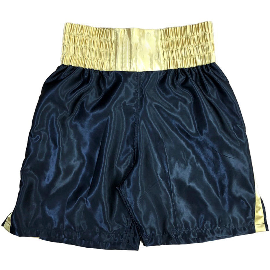 กางเกงขาสั้นมวยไทยสำหรับนักสู้กางเกงขาสั้นมวยไทยสีทองแบบสั่งทำพร้อมป้ายโลโก้