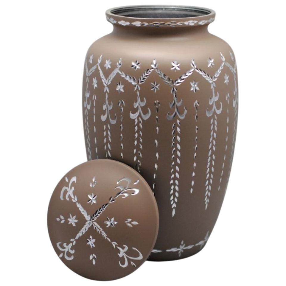 โกศโลหะสีเงินสำหรับใส่เถ้ากระดูกของผู้ใหญ่ที่เก็บของตกแต่งมีสไตล์