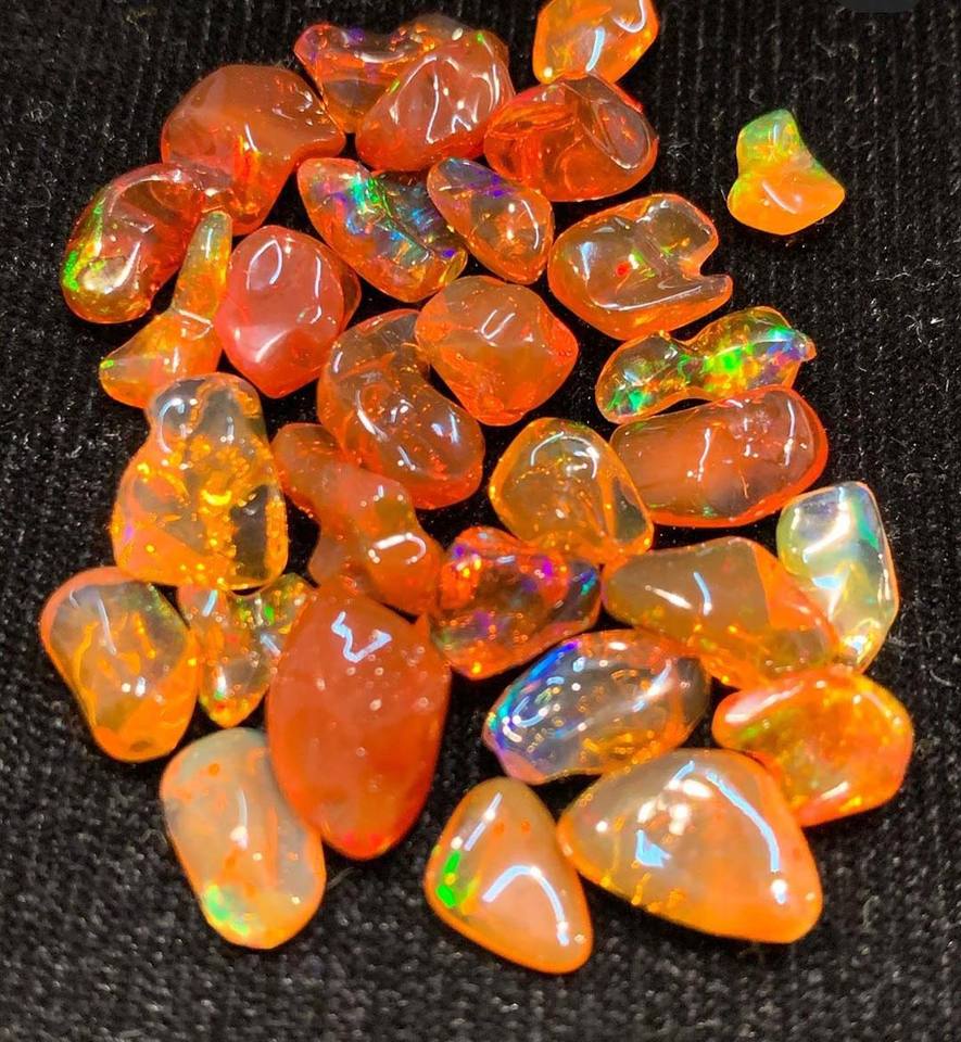 โอปอลสีส้มเอธิโอเปียธรรมชาติคุณภาพเยี่ยมสีสวย แบบหยาบ ได้รับการรับรองจาก IGI เหมาะสำหรับงานหุ้มลวดประดับเครื่องประดับ มีหลายรูปทรงและขนาด