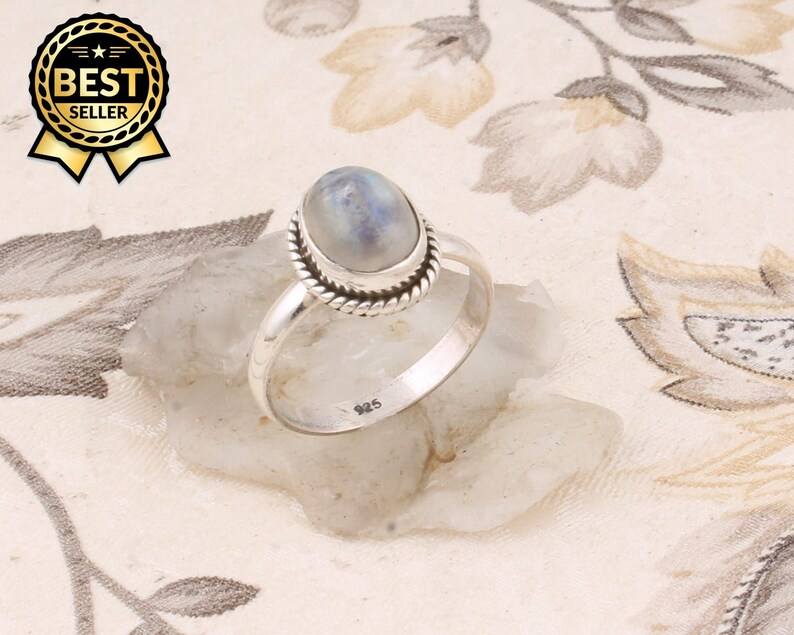 แหวนนิ้วมือกับมูนสโตนสีรุ้งธรรมชาติและแหวนสีเงินพลอย925-แหวนเงินแท้
