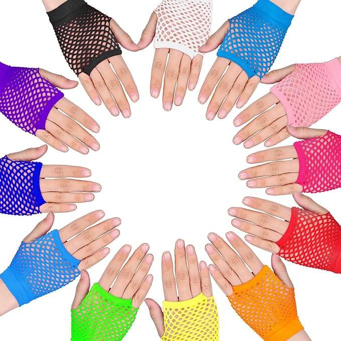 ถุงมือนีออนแบบไม่มีนิ้วสำหรับผู้หญิง-80S 90s เครื่องประดับตาข่ายสั้น