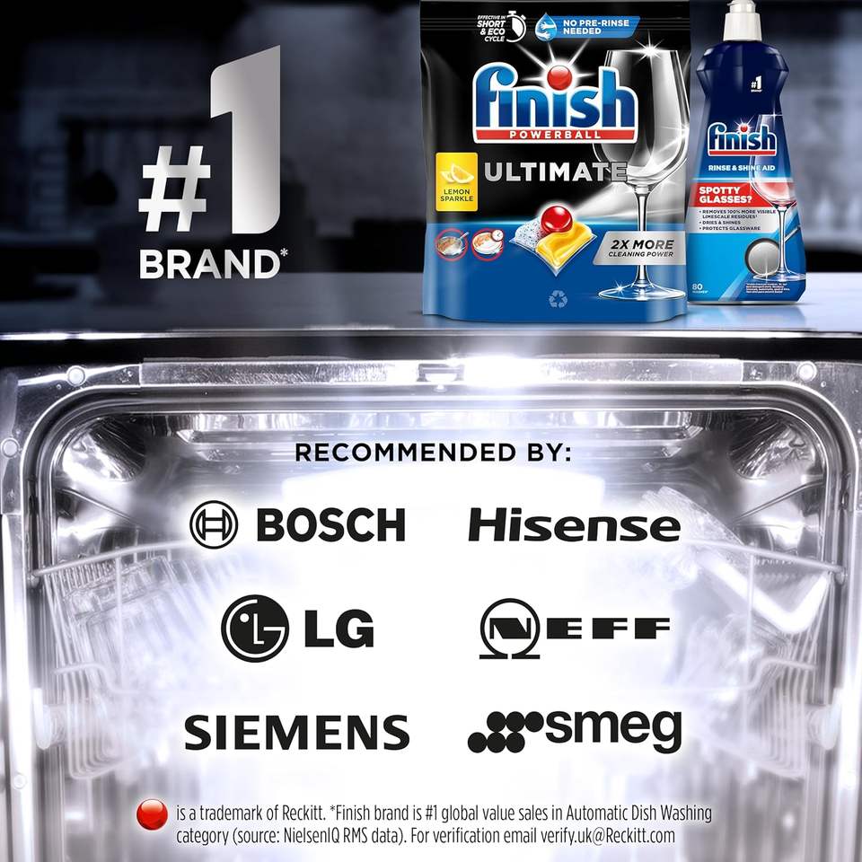 แท็บเล็ตสำหรับเครื่องล้างจาน Finish Ultimate 144 เม็ด (48 x 3 แพ็ค) กลิ่นเลมอนสปาร์คเคิล ทำความสะอาดและเพิ่มความเงางาม ขจัดคราบไขมันได้อย่างมีประสิทธิภาพ