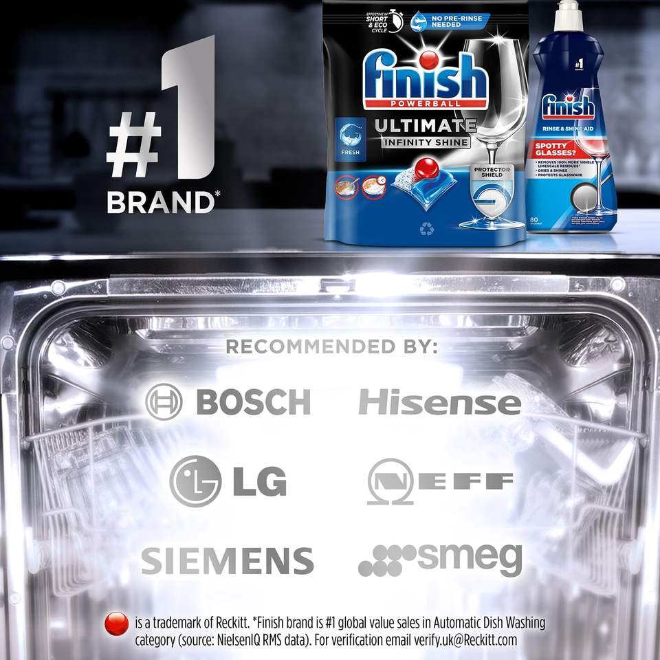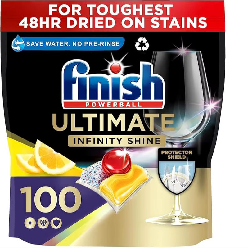 แท็บเล็ตสำหรับเครื่องล้างจาน Finish, Ultimate Infinity Shine, 100 เม็ด, กลิ่นเลมอนสปาร์คเคิล และน้ำยาทำความสะอาดเครื่องล้างจาน, กลิ่นหอมสดชื่น