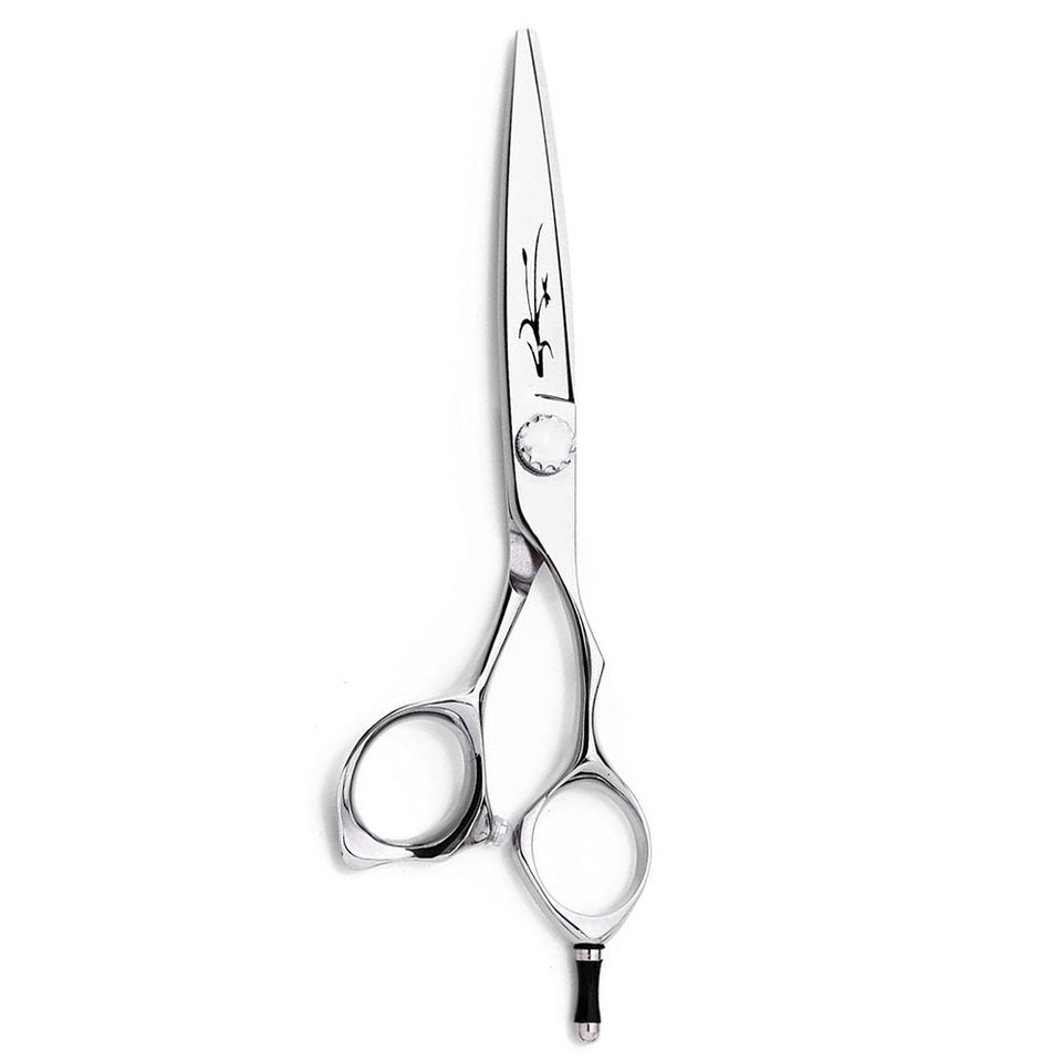 กรรไกรตัดผมสำหรับผู้ชายและผู้หญิงใบมีดเหล็กตรงปลายแหลมสำหรับร้านทำผม