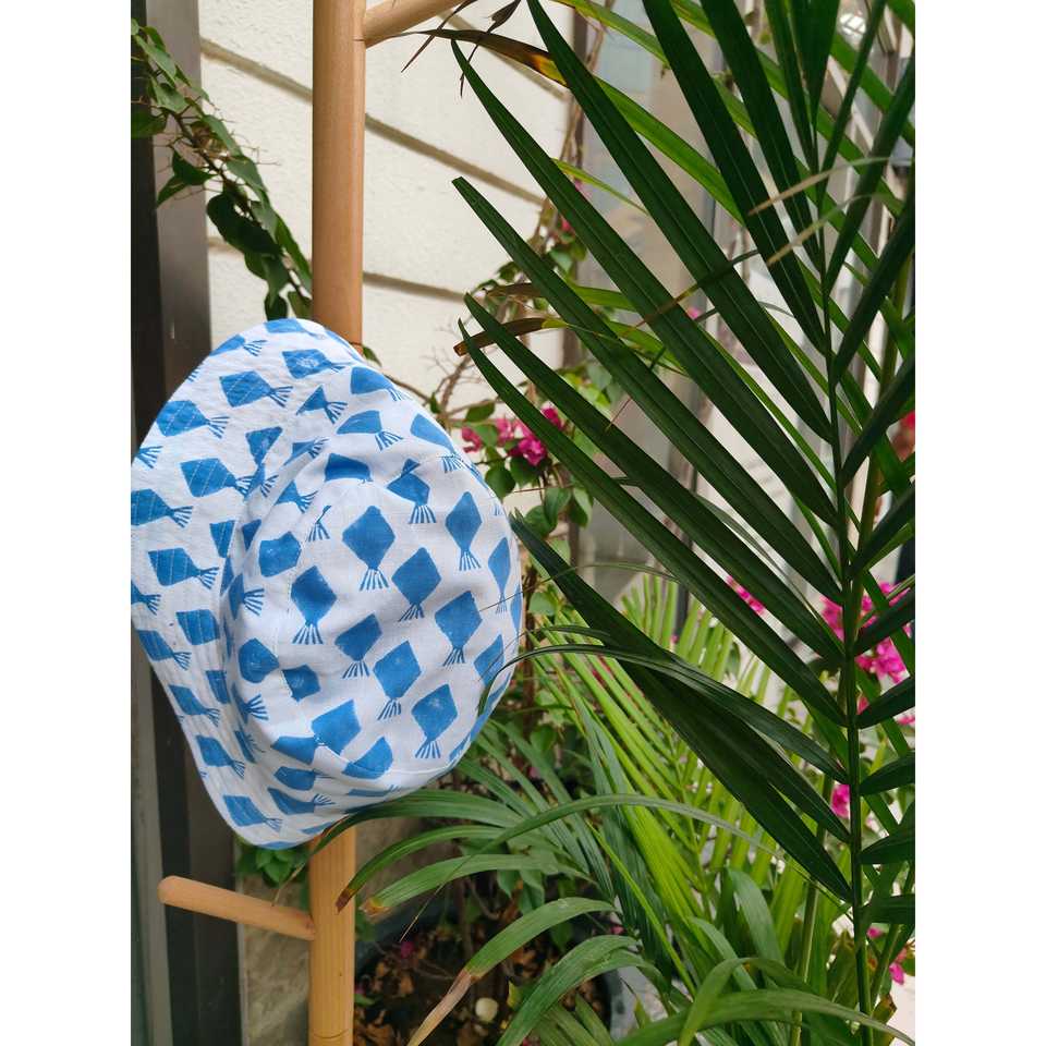 หมวกบักเก็ตปลาสีฟ้า Fintastic ลายปลาการ์ตูนปัก 3 มิติ ผ้าสไตล์ลำลองสำหรับฤดูร้อน เหมาะสำหรับชาวประมง
