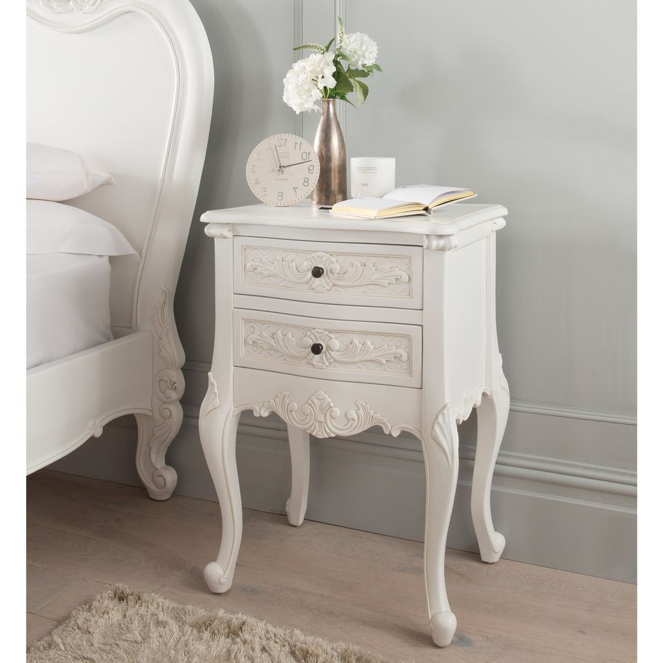 โต๊ะข้างเตียงไม้มะฮอกกานีแท้ รุ่นฟิโอเรนซา สีขาว
