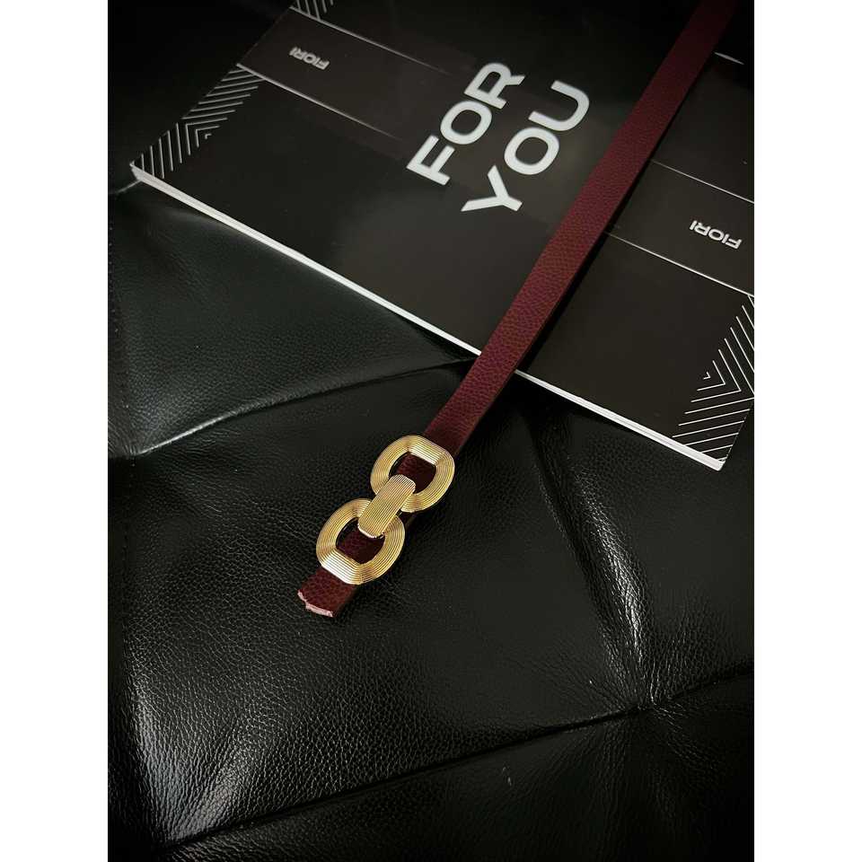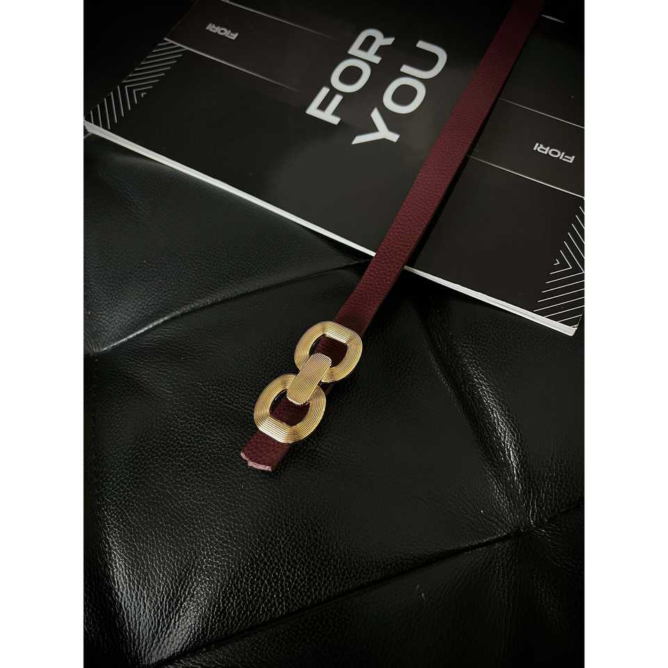 เข็มขัดผู้หญิงแบบหัวเข็มขัดคู่ Fiori หนังวัวแท้ ลายเรขาคณิต ลำลอง หนังแท้
