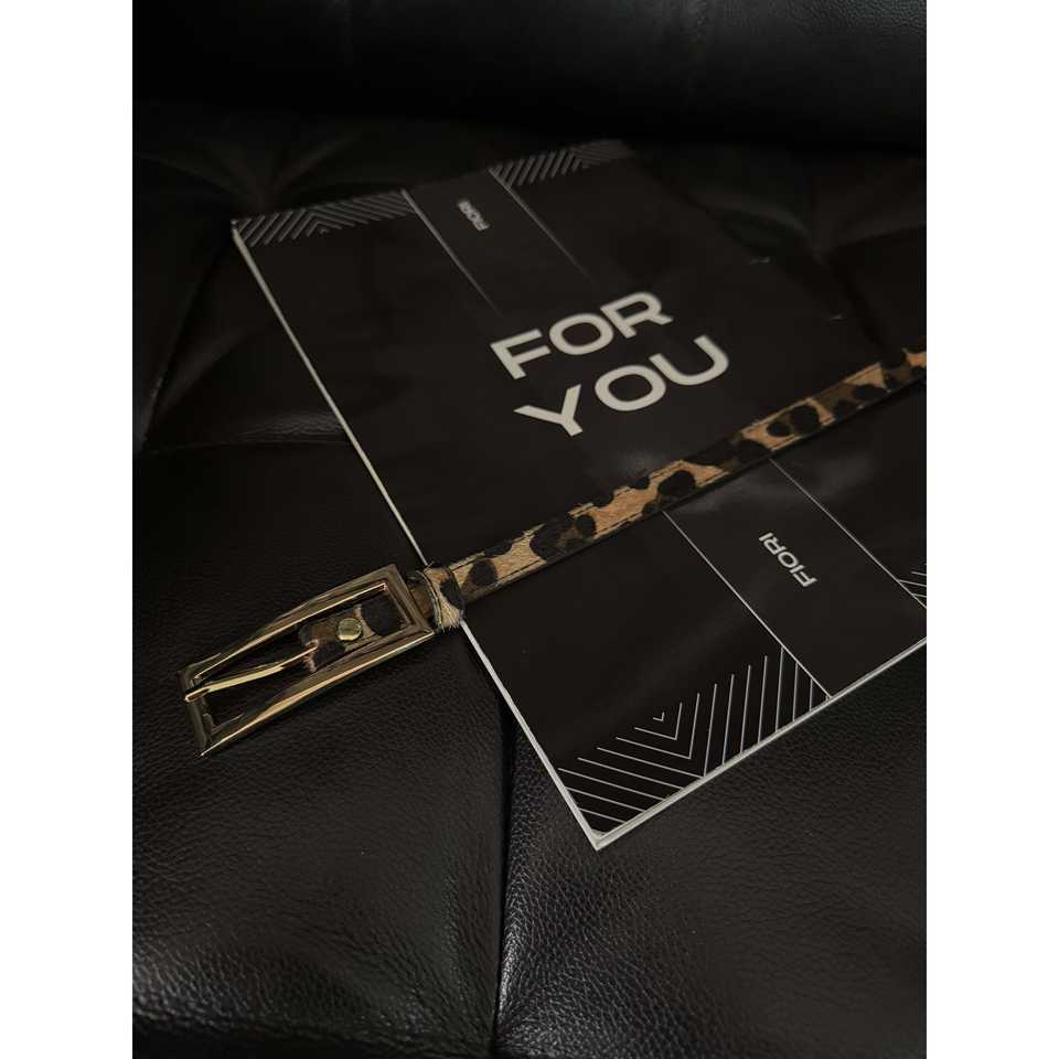 เข็มขัดเส้นเล็ก Fiori พร้อมหัวเข็มขัดแบบสองง่ามสีทอง สไตล์ลำลองเคลือบโลหะผสม สำหรับผู้หญิงและผู้ชาย