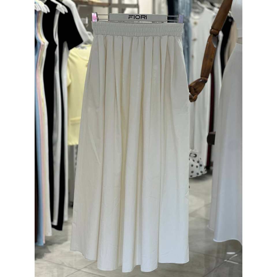 Fiori White Pleated Maxi Skirt High Waist Soft Women's Skirt