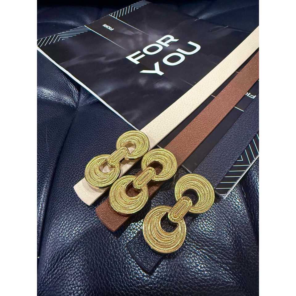 เข็มขัดผู้หญิง Fiori แบบหัวเข็มขัดคู่ สไตล์ลำลอง หัวเข็มขัดโลหะผสม สาย PU