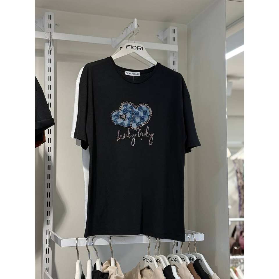 เสื้อยืดพิมพ์ลายหัวใจผู้หญิงฟิโอริสีดำ แขนสั้น น่ารัก ทุกฤดูกาล S Xl