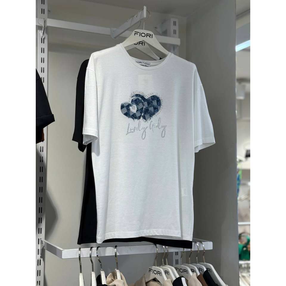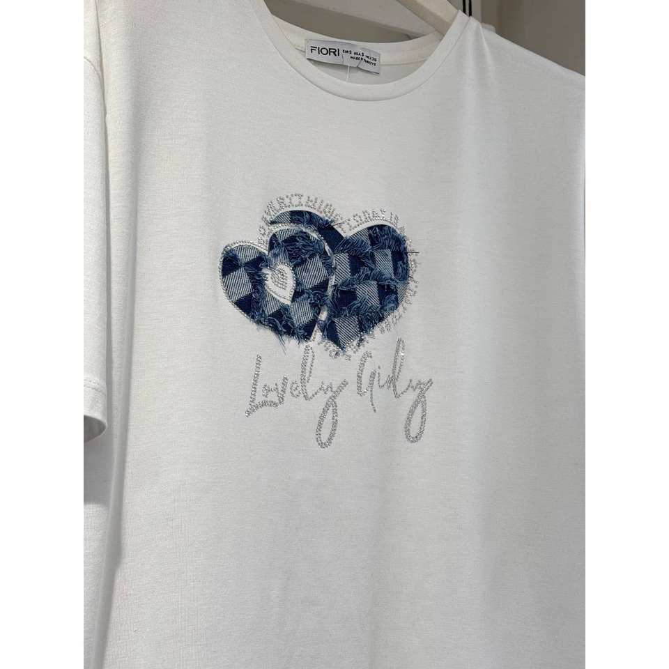 เสื้อยืดพิมพ์ลายหัวใจผู้หญิงฟิโอริผ้าฝ้าย 100% แขนยาวแบบปกติ ดีไซน์น่ารักสำหรับสาวๆ