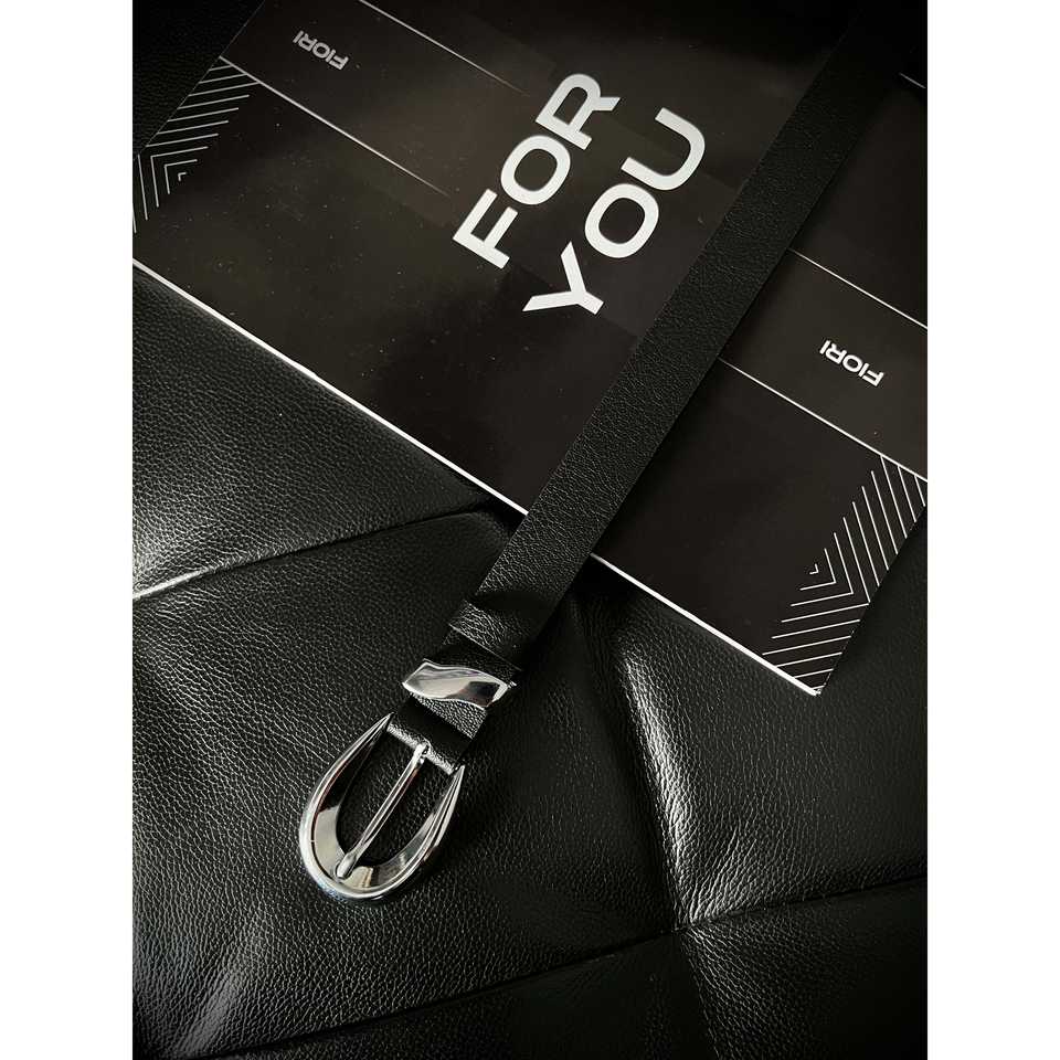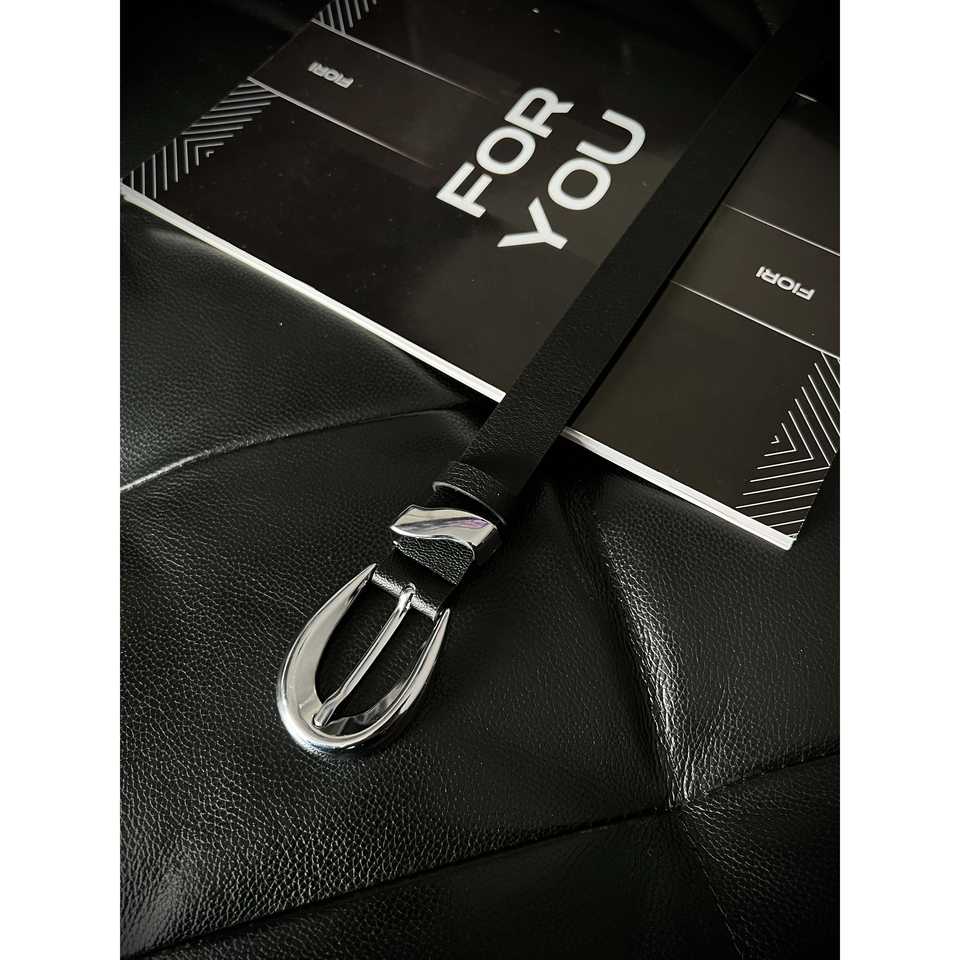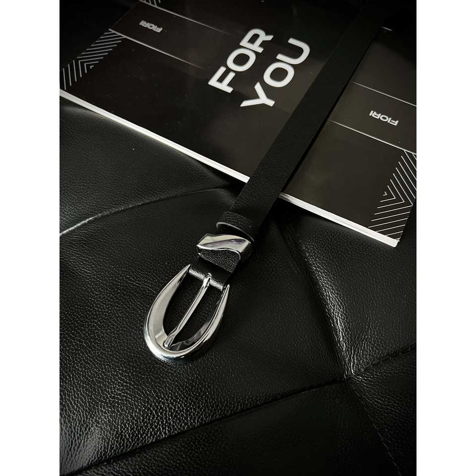 เข็มขัด PU สำหรับผู้หญิงฟิโอริหัวเข็มขัดเหล็กสองง่ามสไตล์ลำลองสีดำ