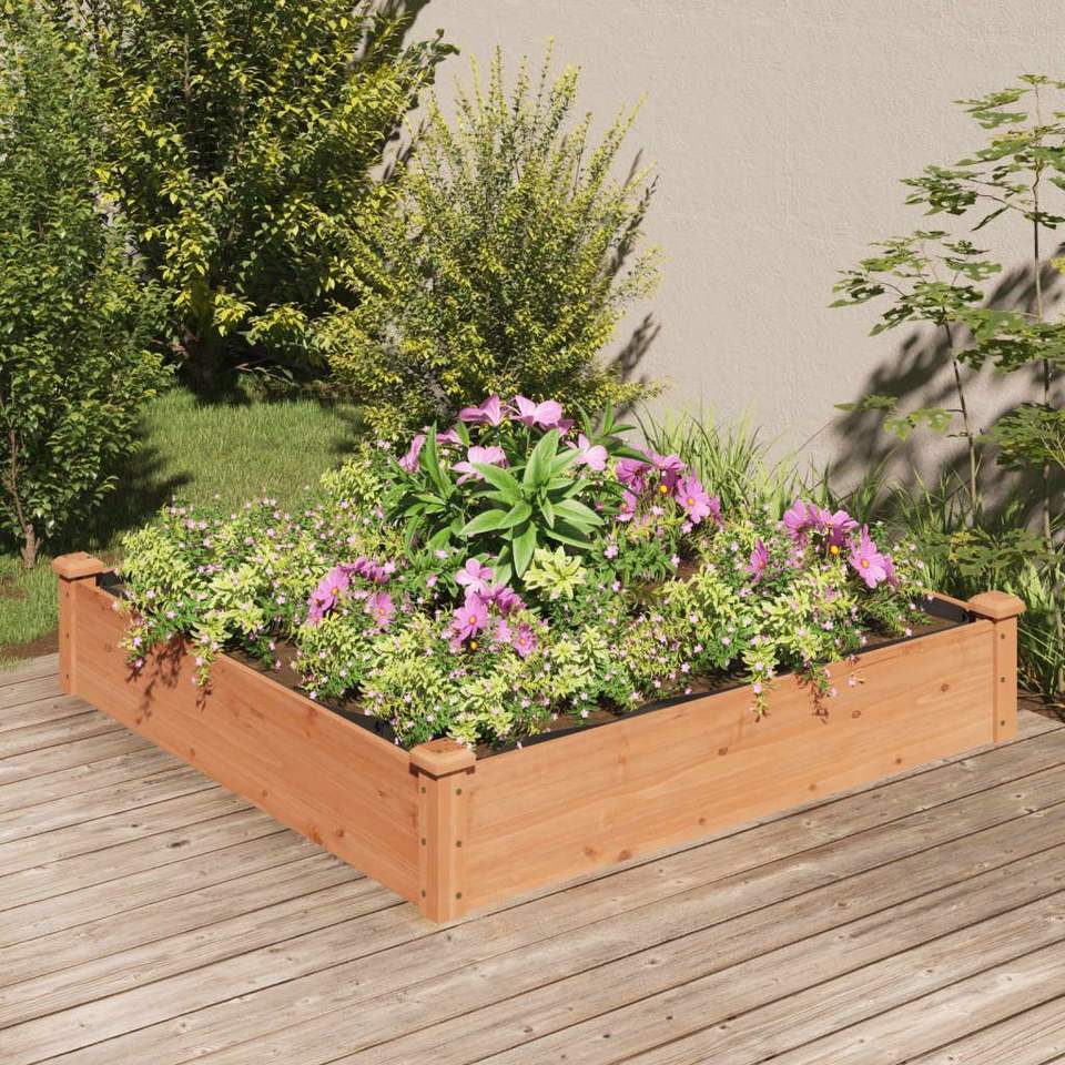 แปลงปลูกผักยกพื้นทำจากไม้เฟอร์ พร้อมผ้าใยสังเคราะห์สำหรับทำสวนกลางแจ้ง ขนาด 4 ฟุต x 4 ฟุต