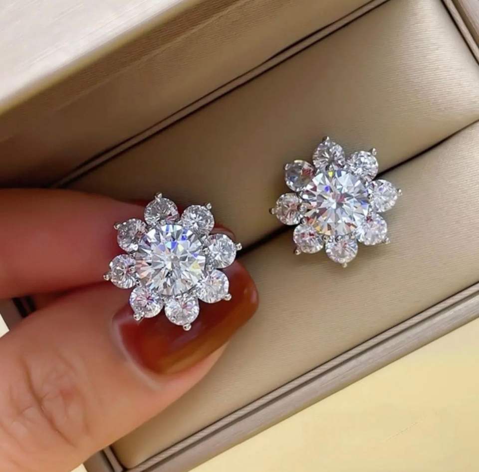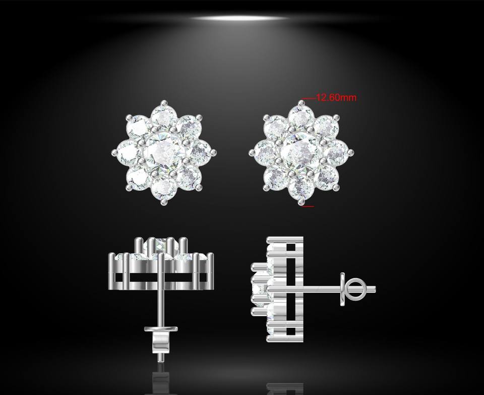 Fire Jewelry 14K 18K Yellow Gold 925 Sterling Silver Vvs1 Moissanite Diamond Stud Earrings Cluster Flower Earrings