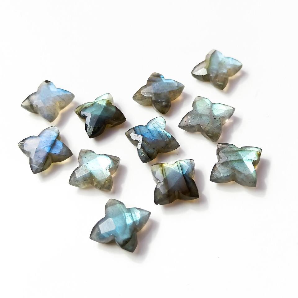 พลอยแกะสลักรูปดอกไม้ลาบราดอไรต์ธรรมชาติขนาด12มม.