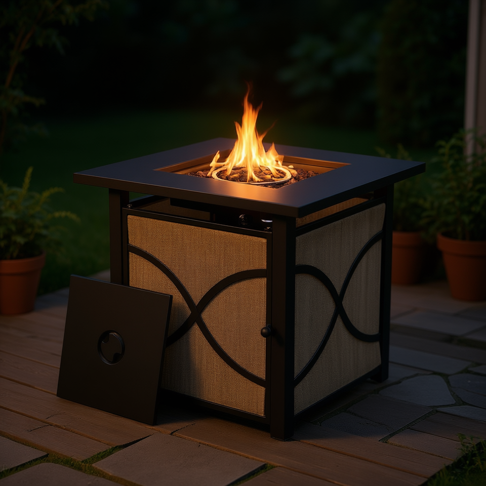 Fire Pit Table 25 Inch 40000 BTU Propane With Lid Outdoor Modern Metal Powder Coated Freestanding