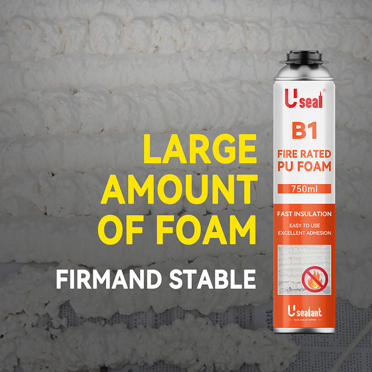 กันไฟ B1ฉนวนกันความร้อนและอะคูสติกโฟม PU กันไฟสำหรับเติมช่องว่างปิดผนึกบนหน้าต่างผนังข้อต่อและท่อ