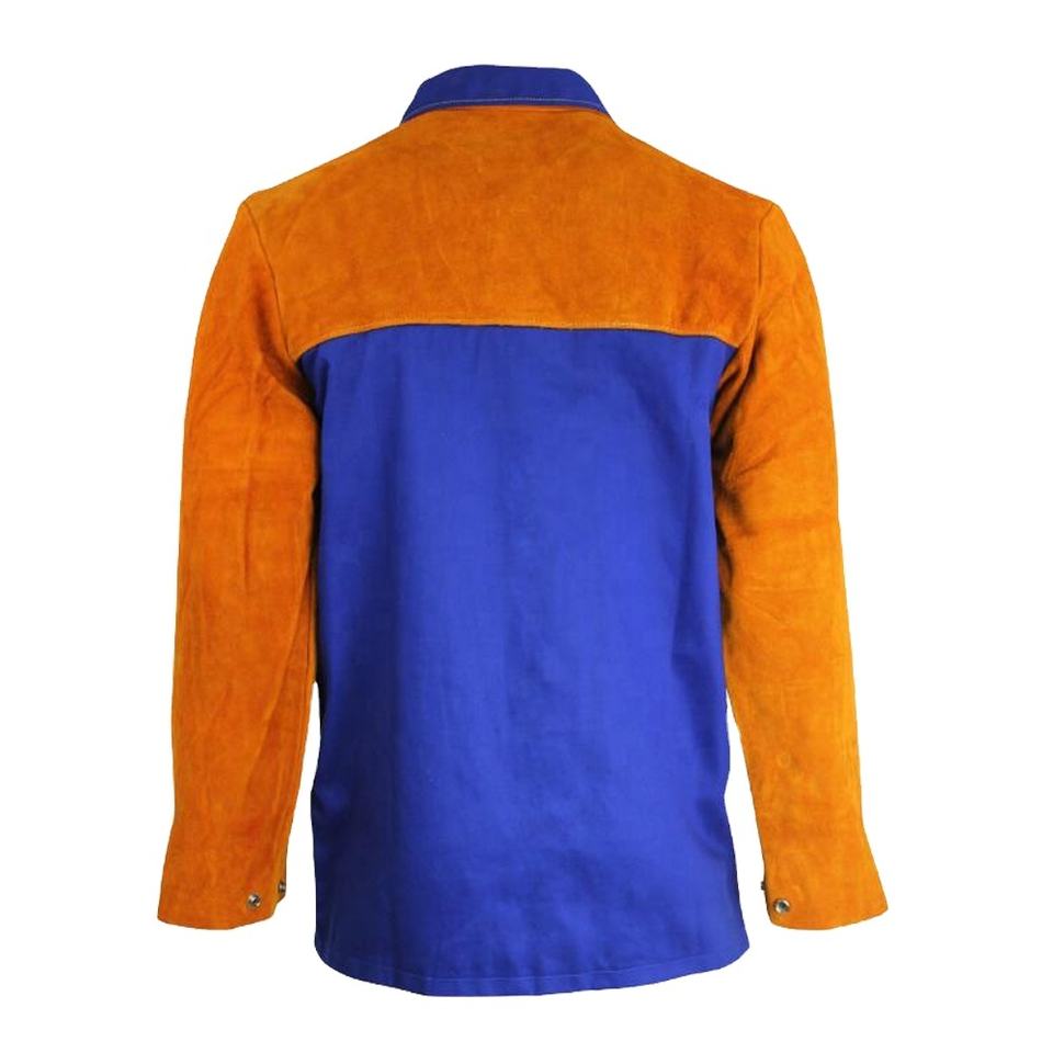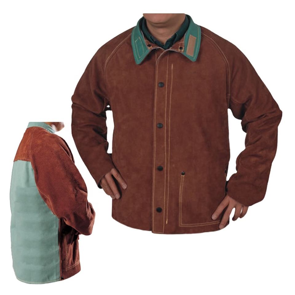 เสื้อแจ็คเก็ตเชื่อมป้องกันไฟลาม ทนความร้อนได้สูงถึง 1000 องศาเซลเซียส กันน้ำ ผลิตจากหนังวัวแท้